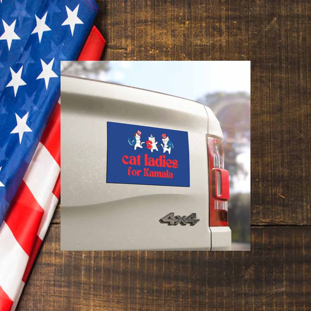 Join the Cat Ladies For Kamala movement and show your support for a future where all voices are heard. Order your 24″ Cat Ladies For Kamala car magnet today and make a difference!
