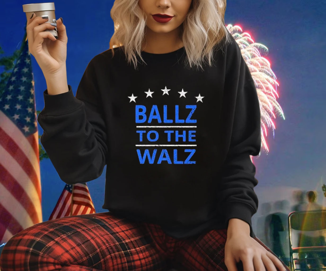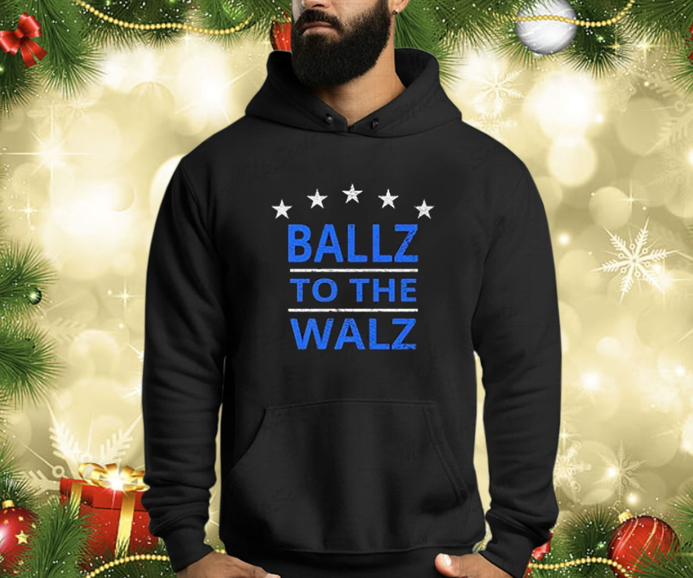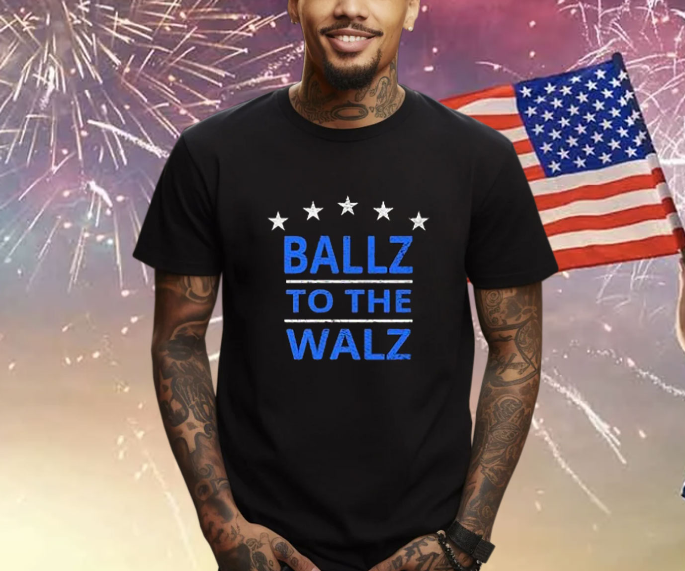 Bold graphics featuring Tim Walz’s name and the words “Ballz To The Walz”