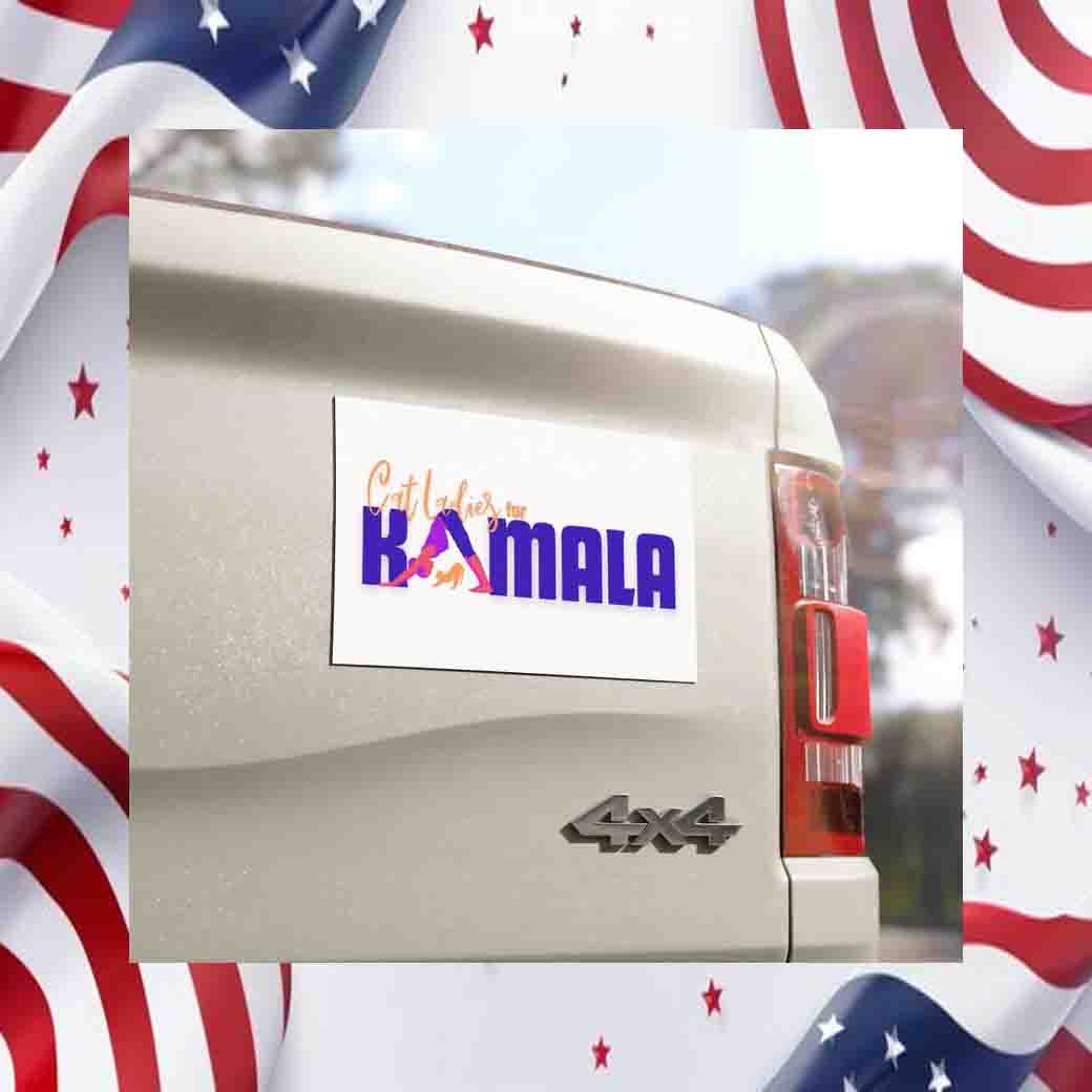 Join the Cat Ladies For Kamala movement and order your car magnet today! Let your car be a billboard for your beliefs and a reminder that even our furry friends deserve a voice in our democracy.