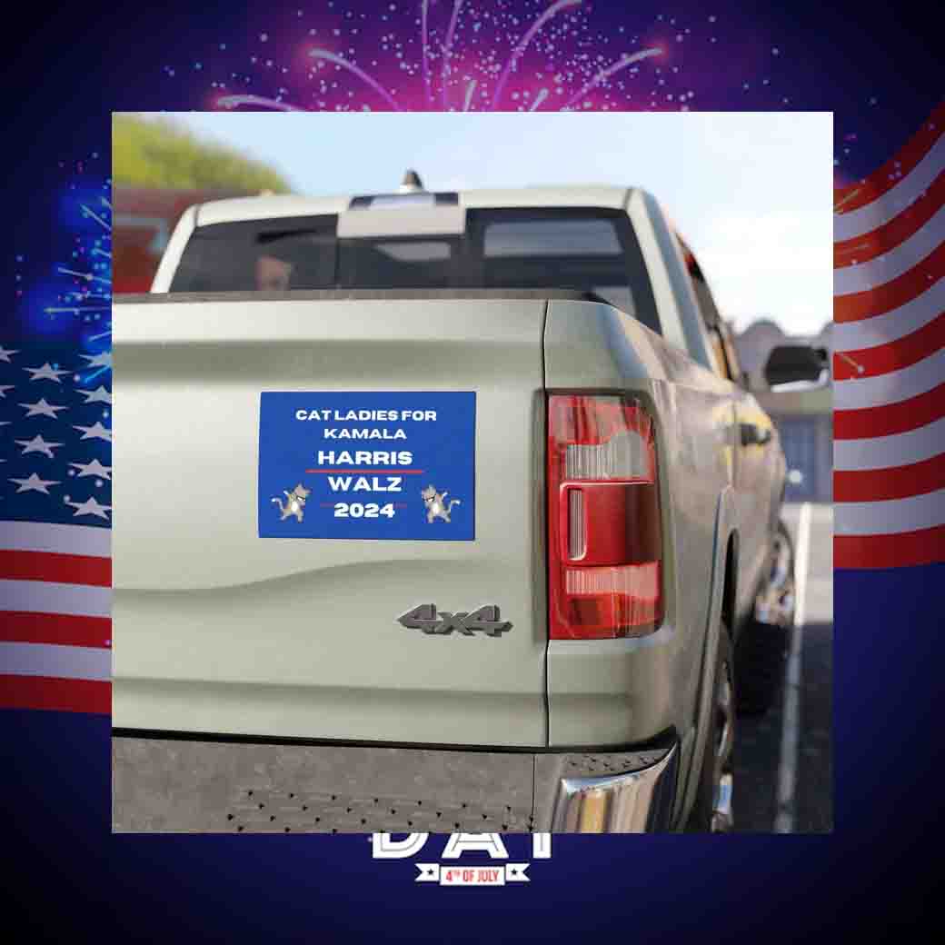 Join the Cat Ladies for Kamala Harris Walz movement and show your support for the candidates who share your values. This car magnet is a must-have for any political enthusiast or cat lover!