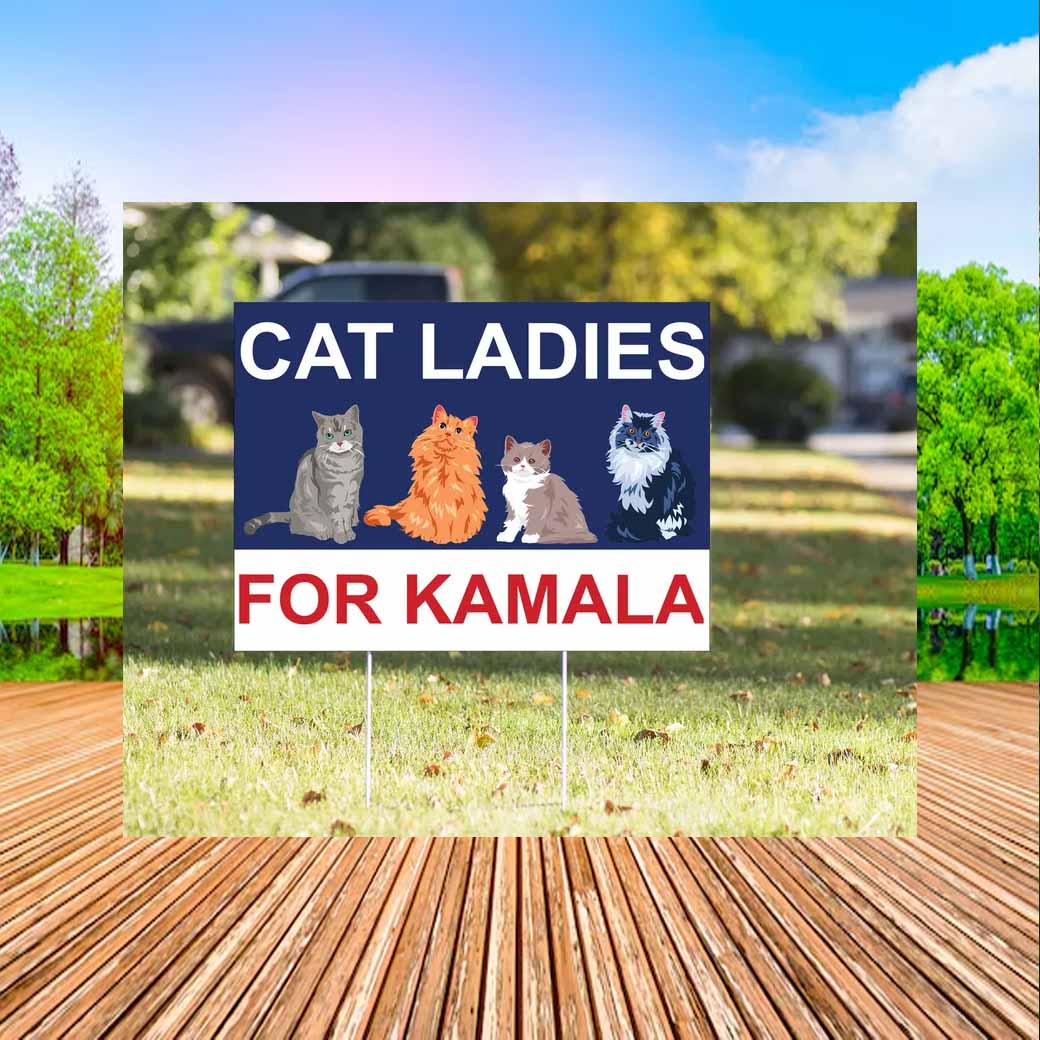 Show your support for Kamala Harris and your feline friends with this purr-fect yard sign!