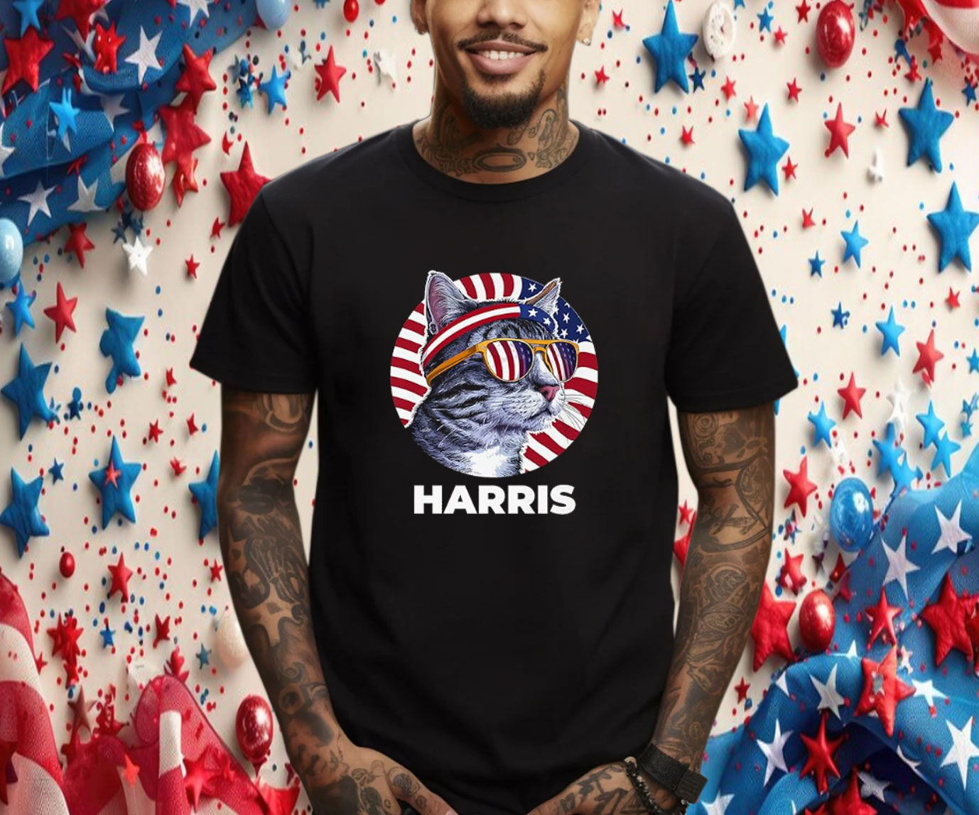 Cat Lady Kamala Harris 2024 President Election American Flag T-Shirt