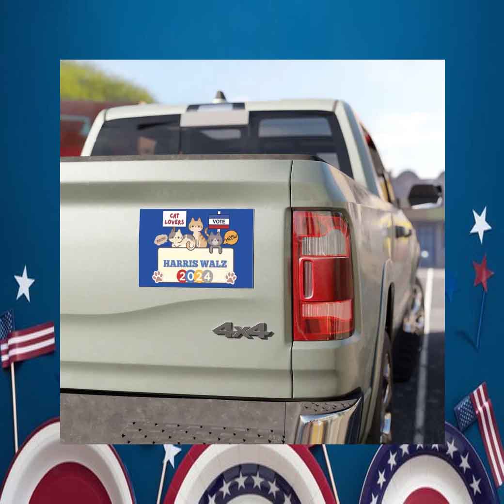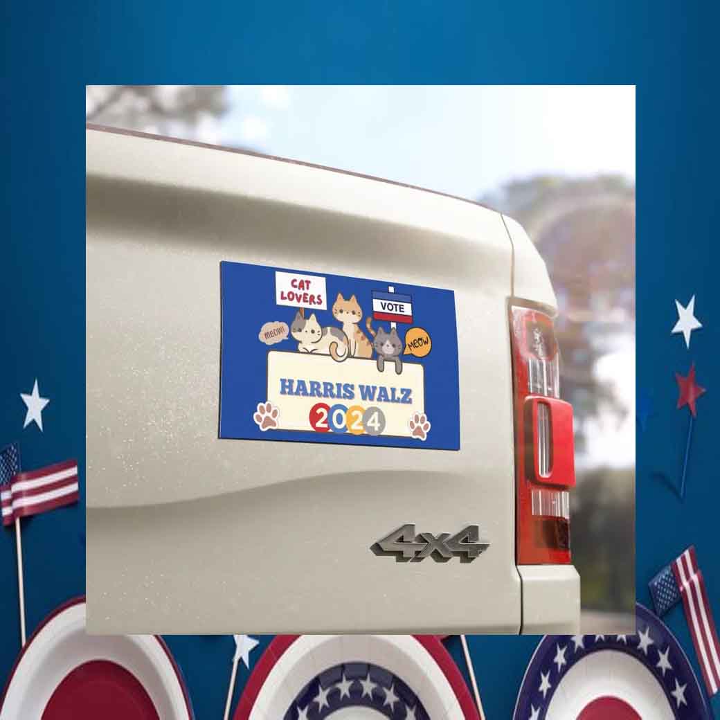 Show your support for the feline-friendly candidates with our exclusive Cat Lovers Vote Harris Walz President 2024 Car Magnet!