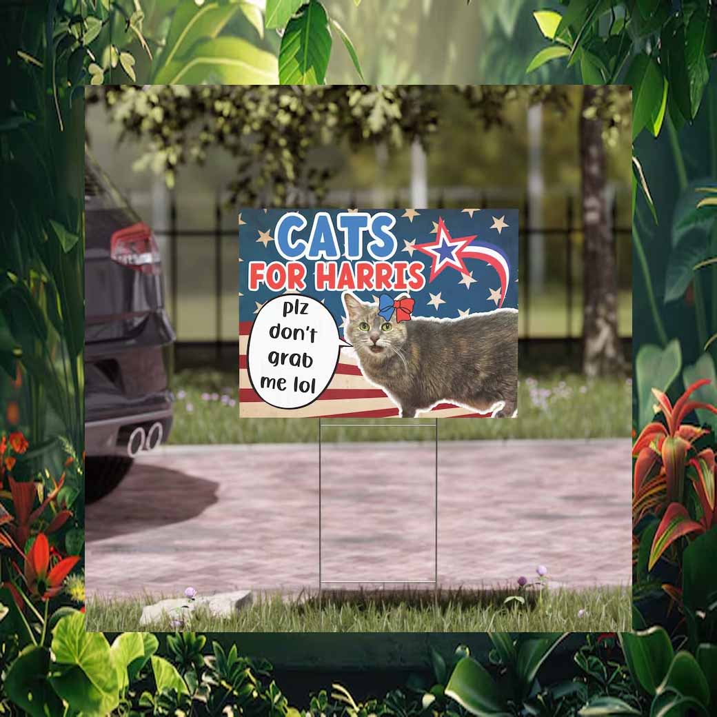 Show your support for Cats for Harris 2024 with this vibrant and durable yard sign!
