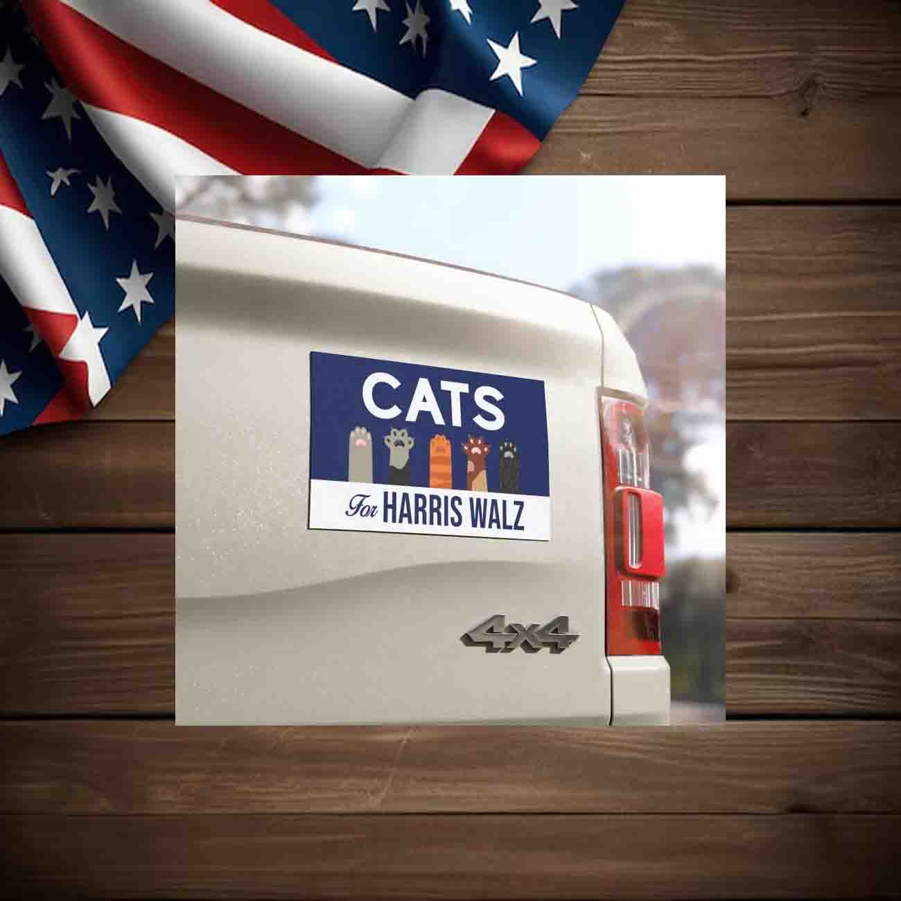 Show your support for Harris Walz in the upcoming election with our eye-catching car magnet! Featuring a vibrant design of adorable cats, this magnet is sure to turn heads and spark conversations.