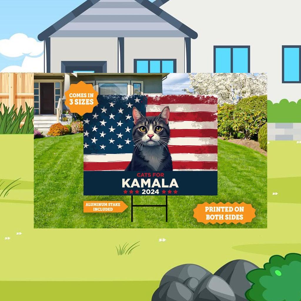 Join the Cats For Kamala movement today and show your unwavering support for a leader who believes in human rights, equality, and a better tomorrow for all. Order your Cats For Kamala 2024 Yard Sign now and let your voice be heard!
