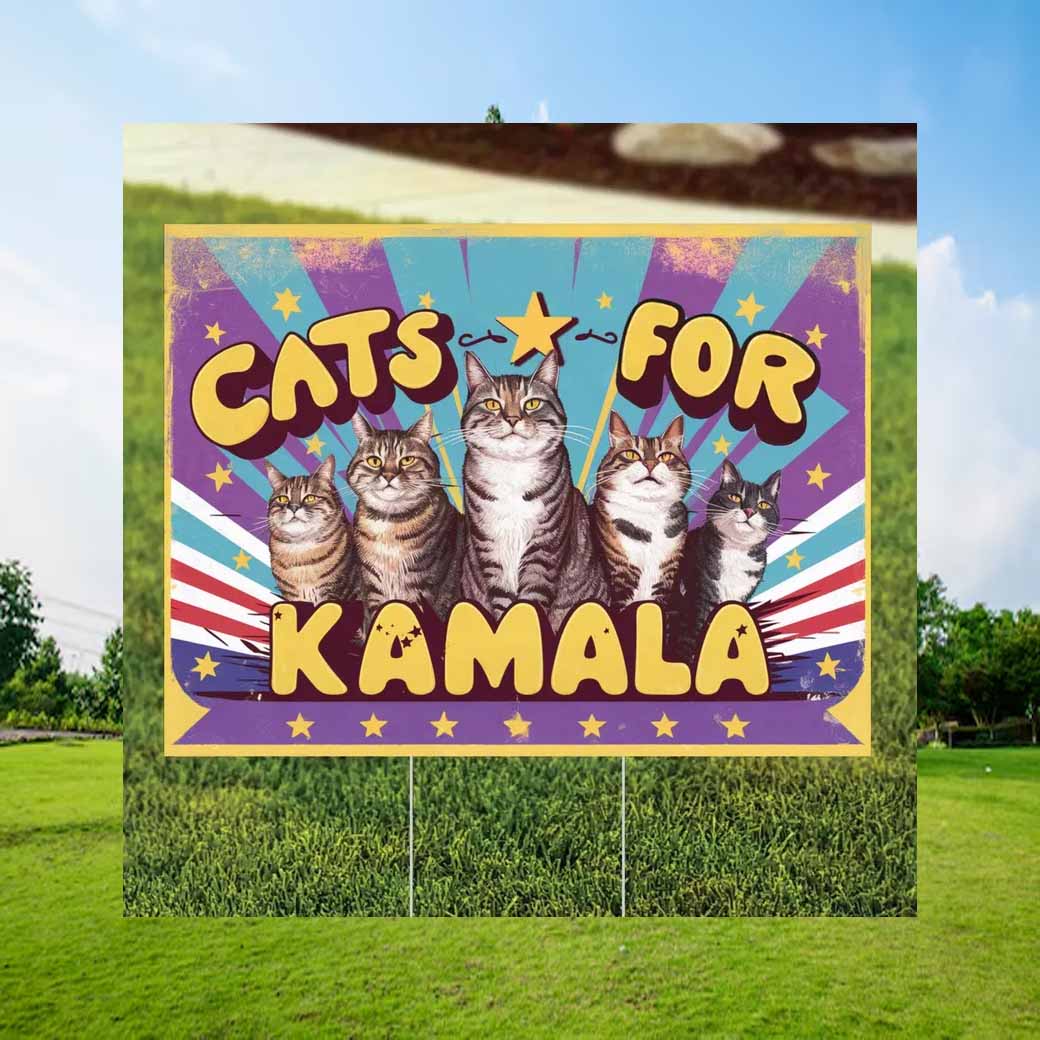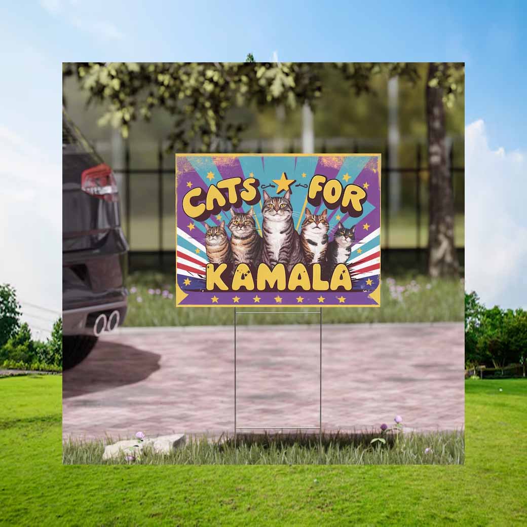 Show your support for Kamala Harris and her love for cats with this eye-catching 24-yard sign!