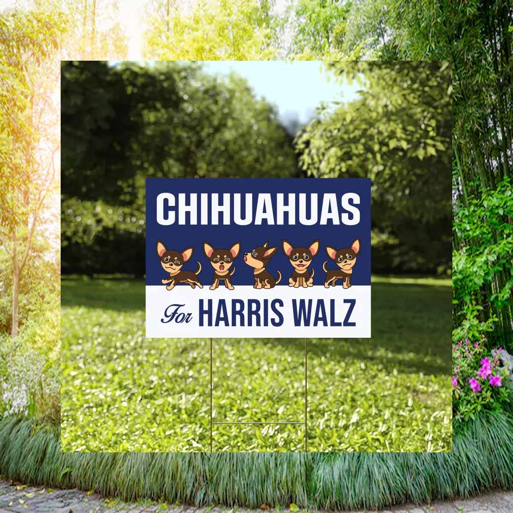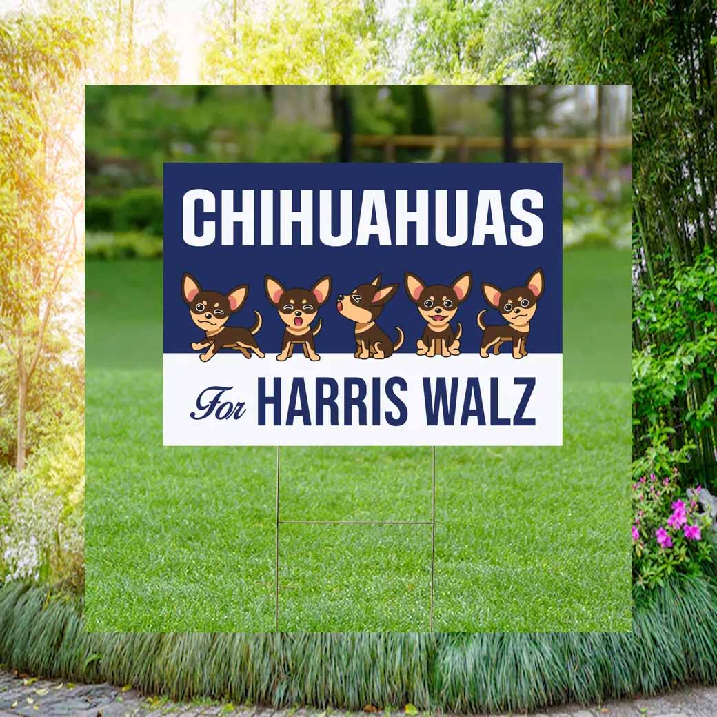Show your support for Harris Walz with this eye-catching yard sign featuring adorable Chihuahuas!