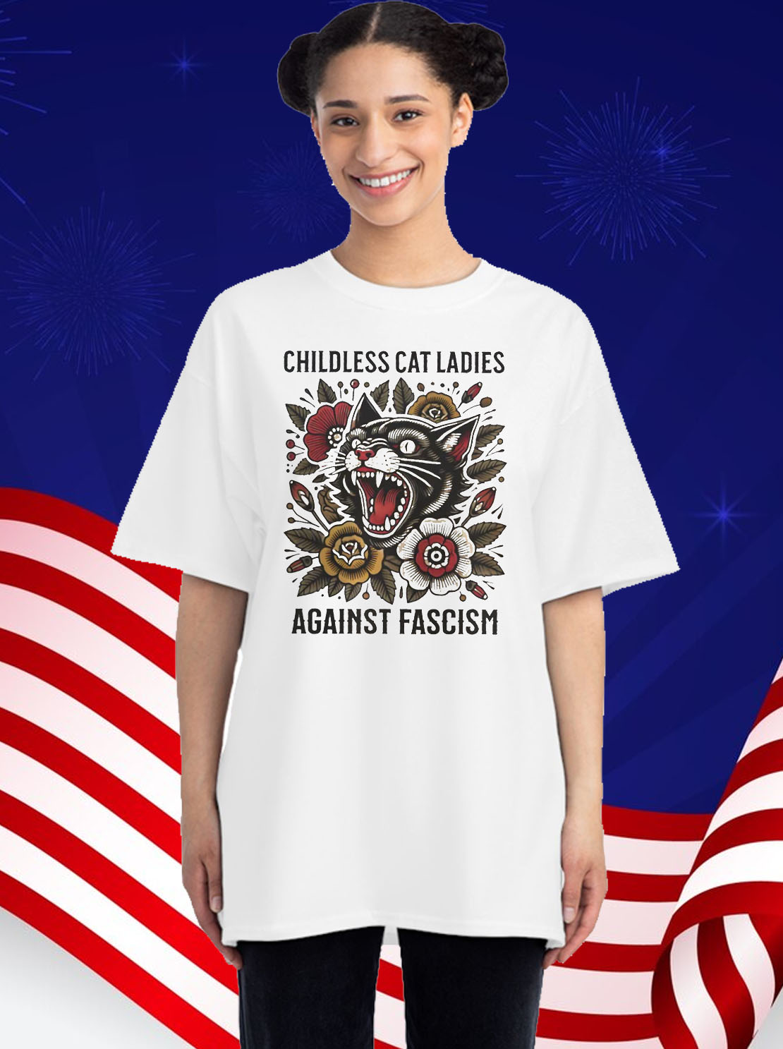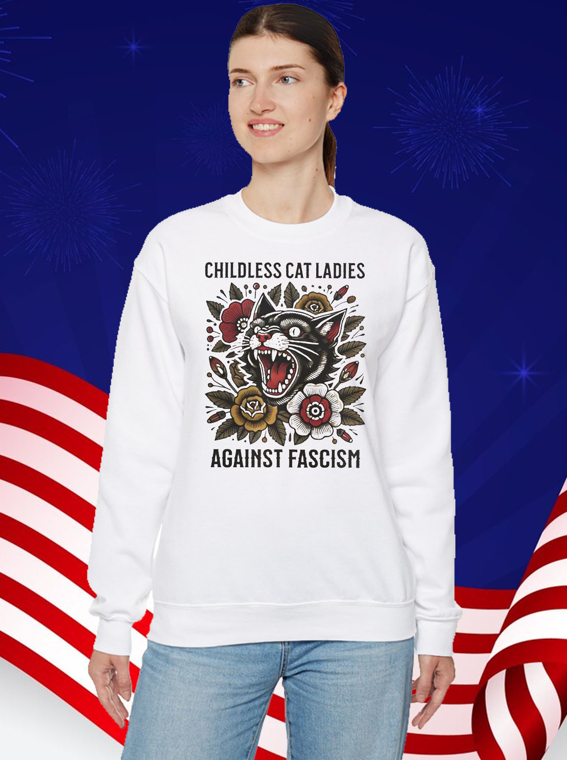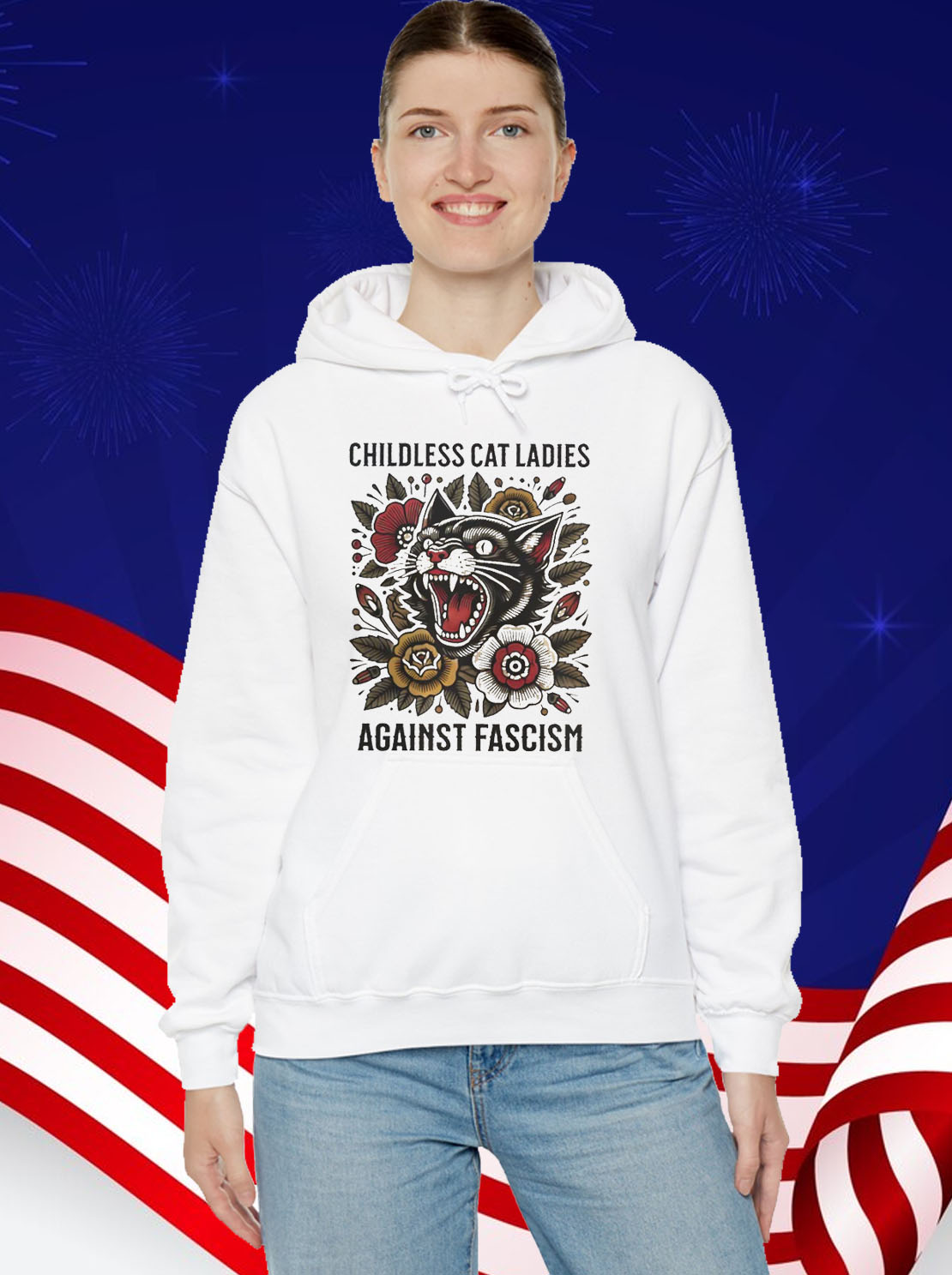 Order your “Childless Cat Ladies Against Fascism” sweatshirt now and show the world that you stand against hate and intolerance. Together, we can create a future where everyone is treated with dignity and respect.