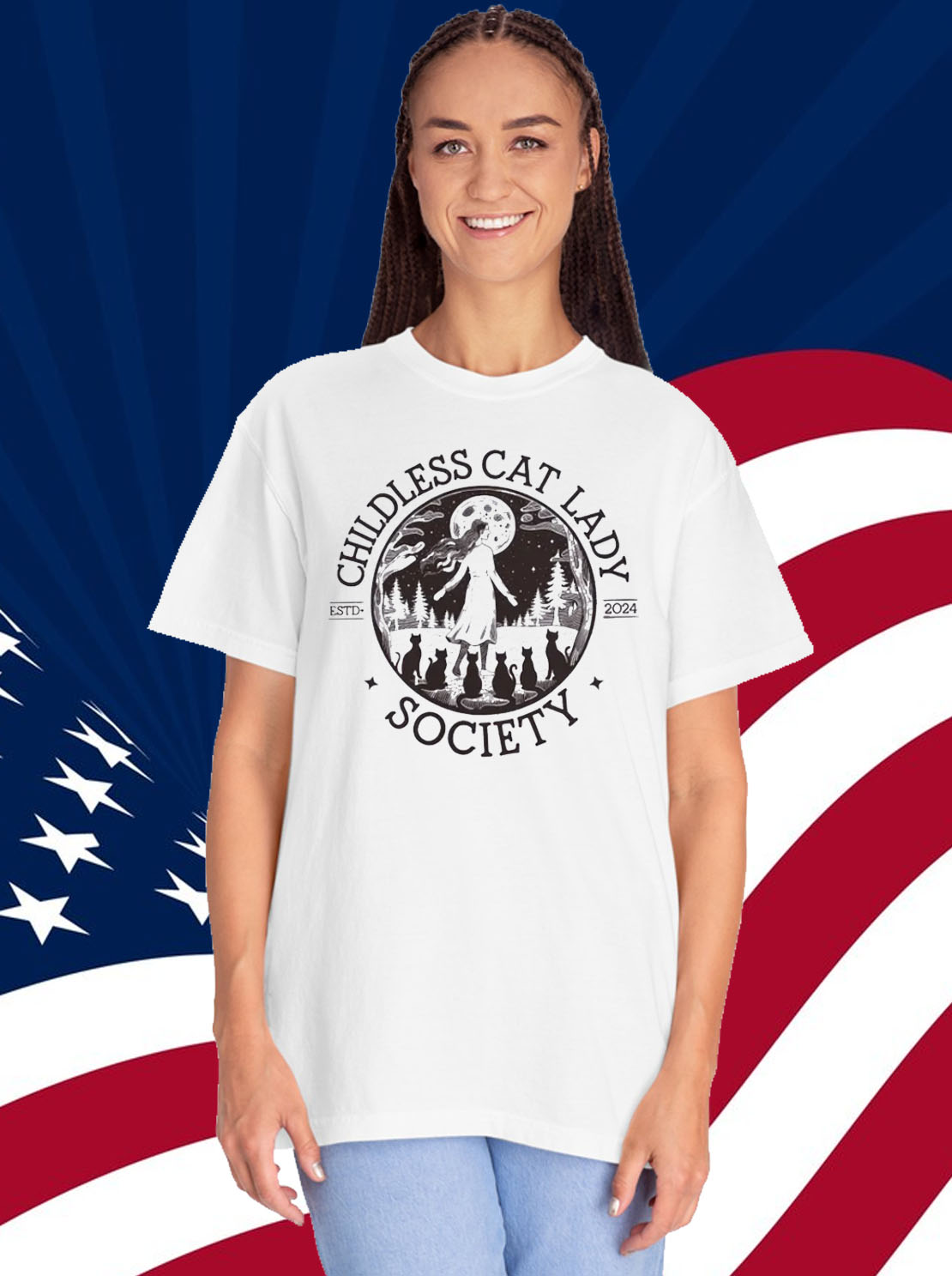 Join the movement and order your “Childless Cat Ladies for Harris” shirt today. Together, we can amplify our voices and create a future where women’s choices are respected and celebrated.