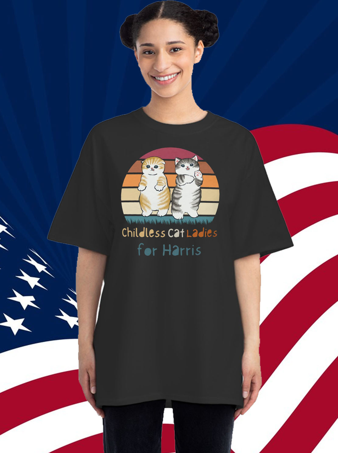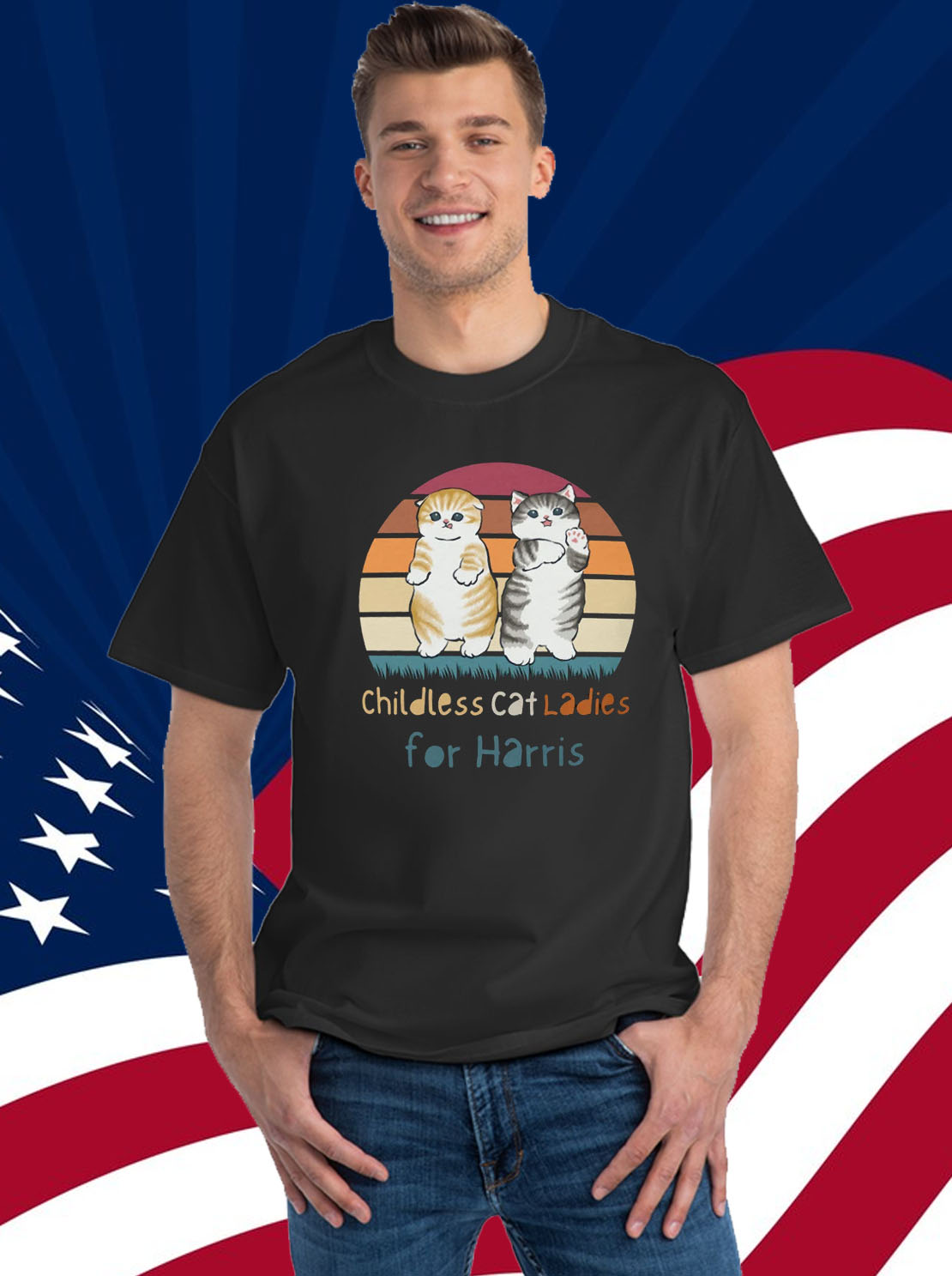 Join the ranks of “Childless Cat Ladies for Harris” and proudly display your love for both cats and your child-free choice. Order your T-shirt today and embrace the joy of feline companionship and the freedom to live life on your own terms!