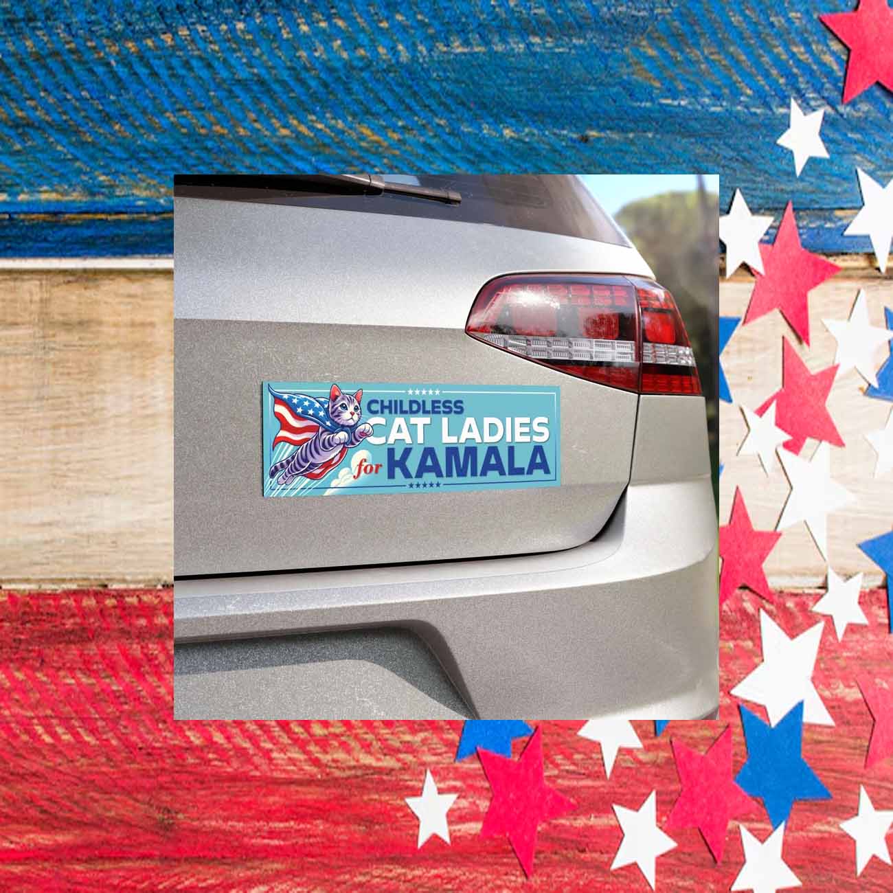 Show your support for Kamala Harris and your feline companions with this eye-catching car magnet!