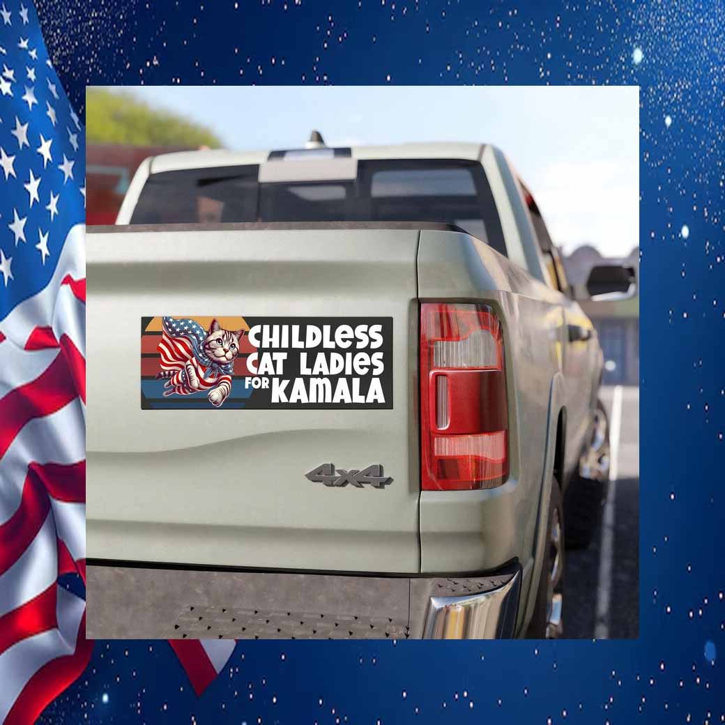 Join the ranks of Childless Cat Ladies For Kamala and proudly display your support with this vibrant and durable car magnet. It’s the perfect way to show your political stance, celebrate your feline companions, and add a touch of personality to your vehicle.