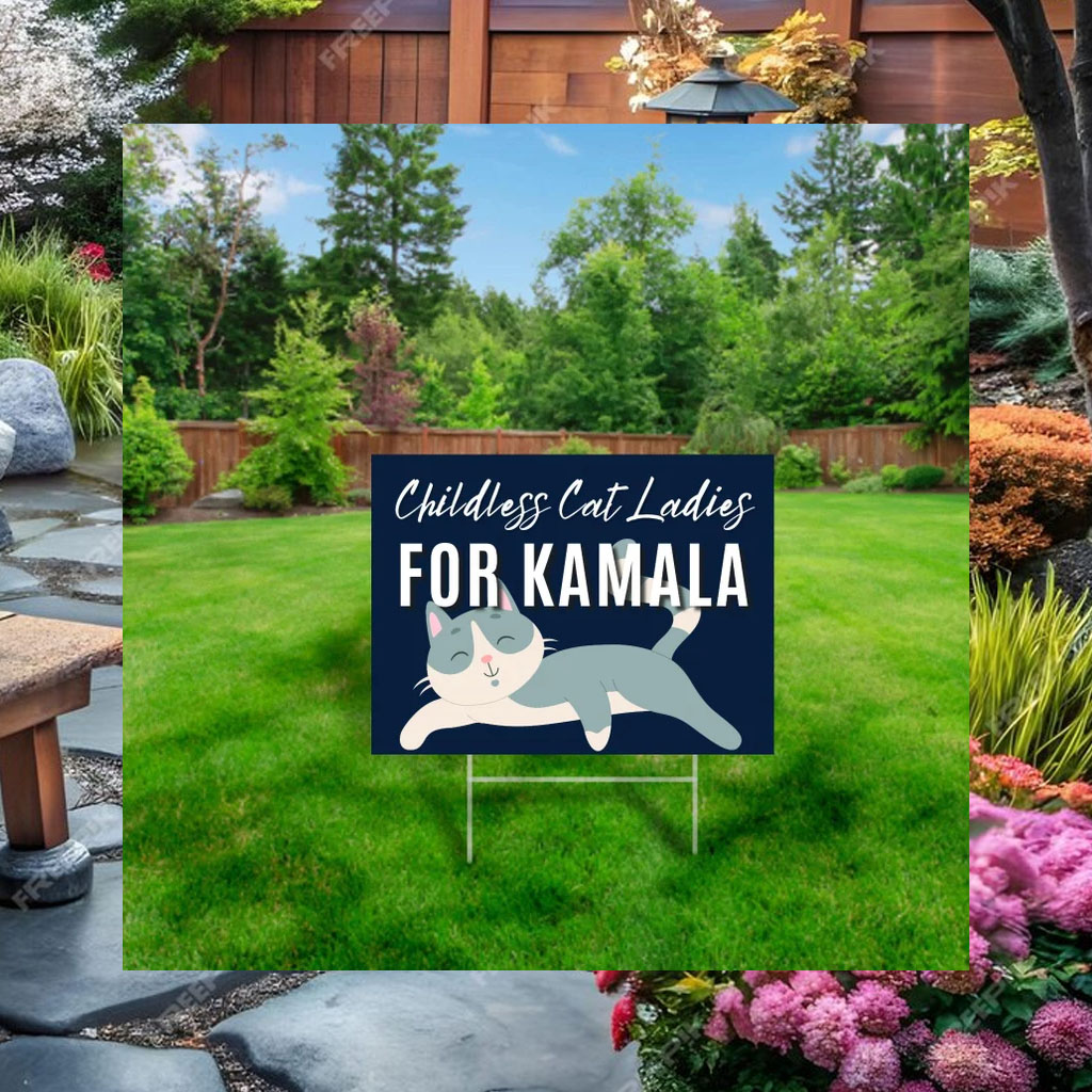 Join the movement of Childless Cat Ladies for Kamala and proudly display this yard sign as a symbol of your support for a strong, compassionate, and feline-friendly leader.