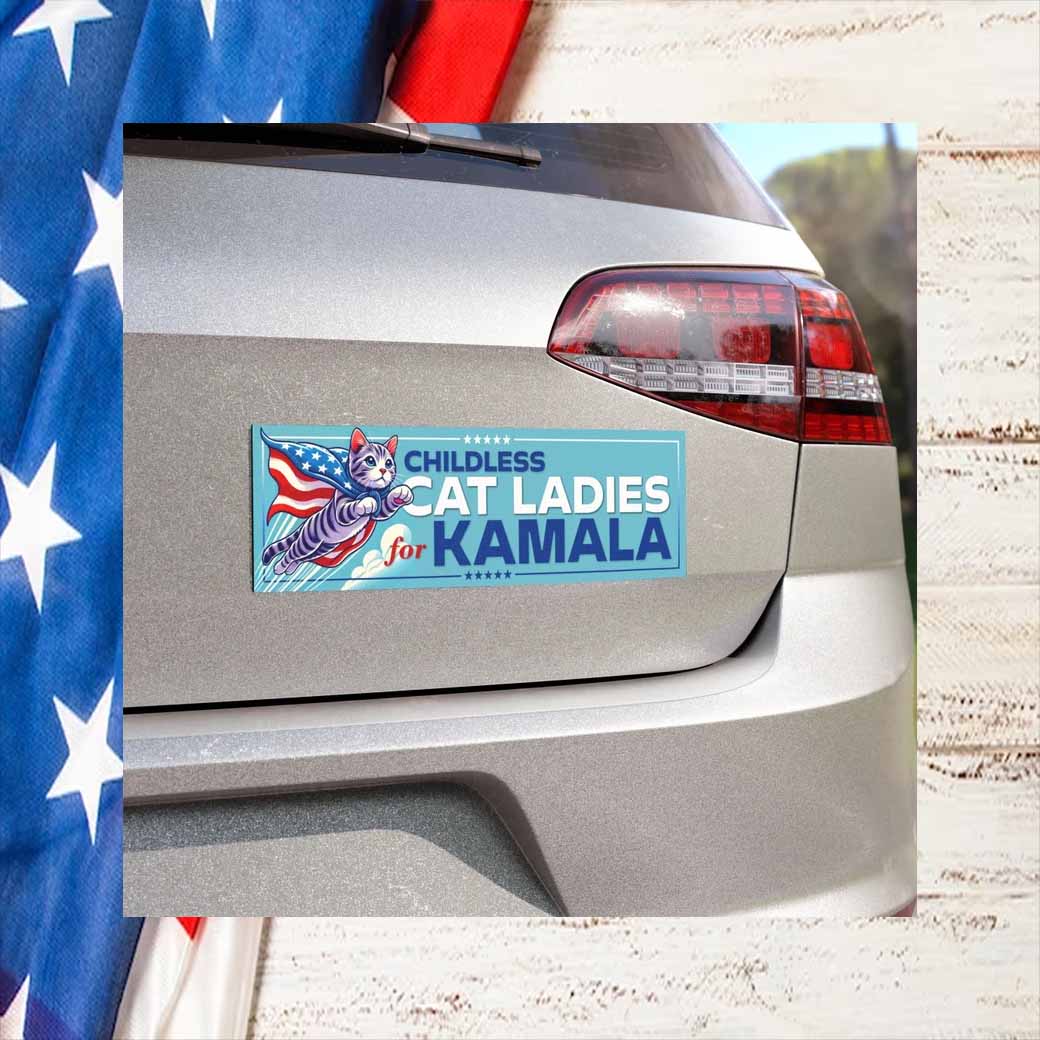 Join the movement of Childless Cat Ladies for Kamala Harris and proudly display this car magnet on your vehicle. It’s a statement of your political beliefs, your love for cats, and your unwavering support for a strong and compassionate leader.