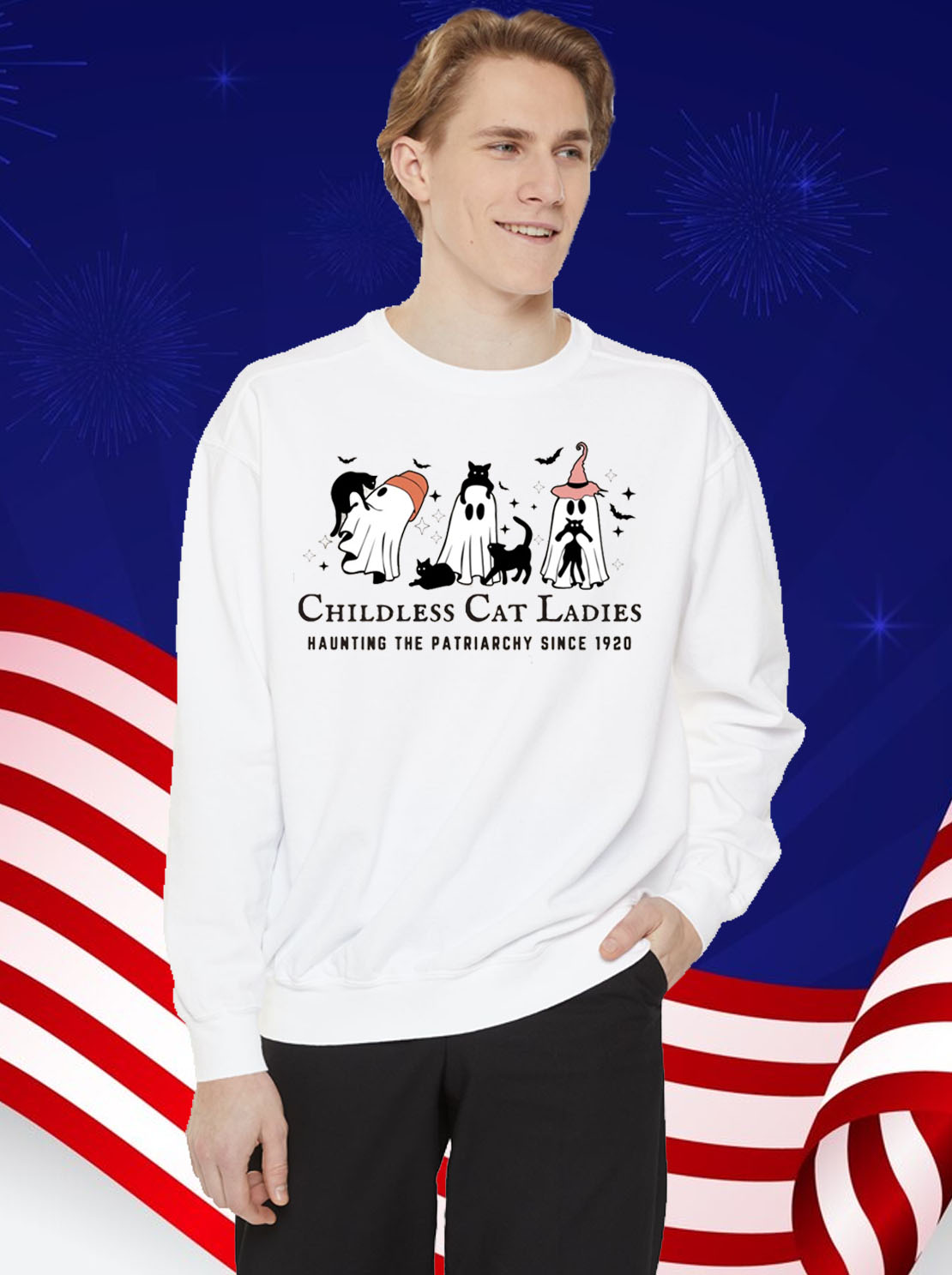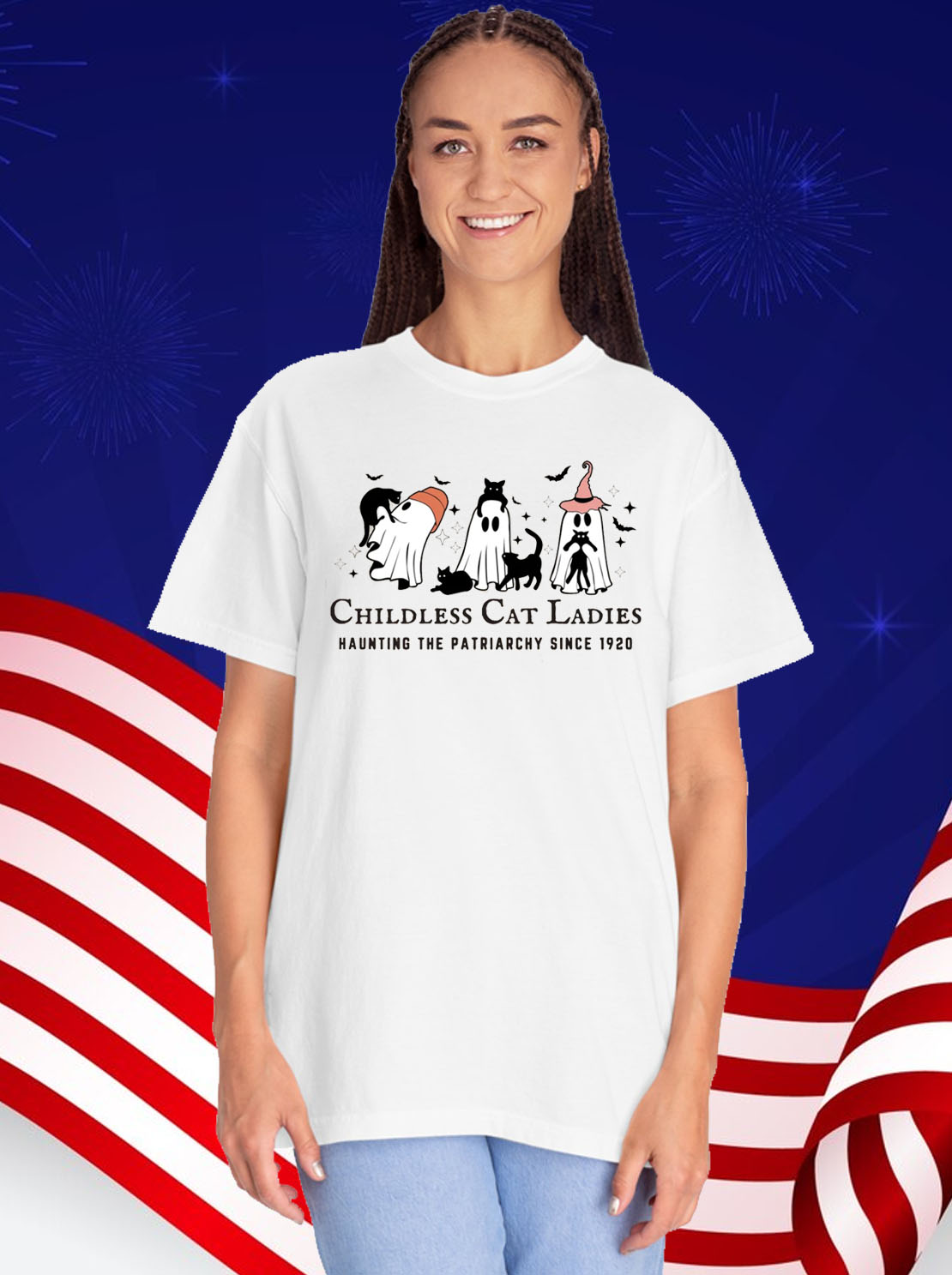 “Childless Cat Lady” slogan in bold, playful lettering