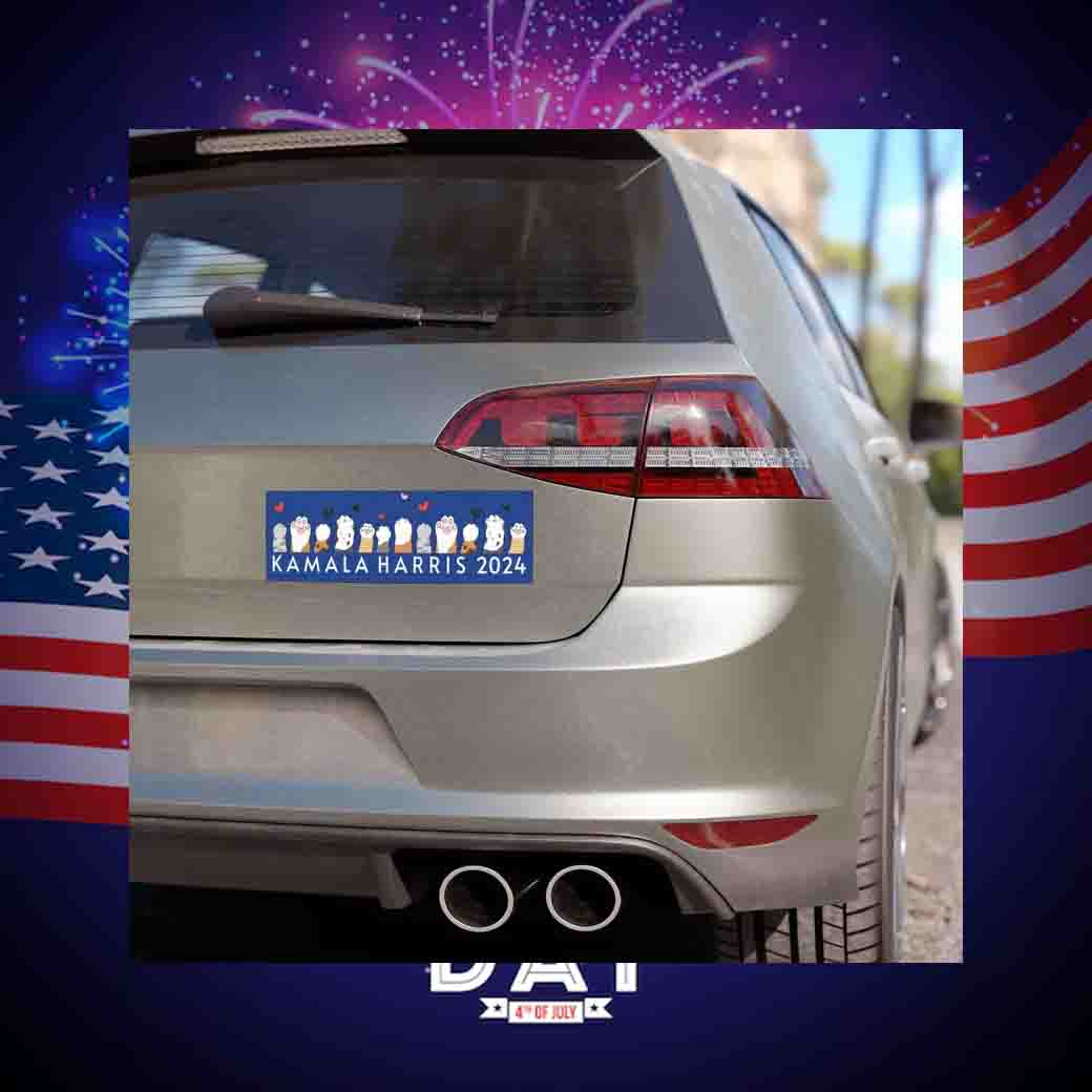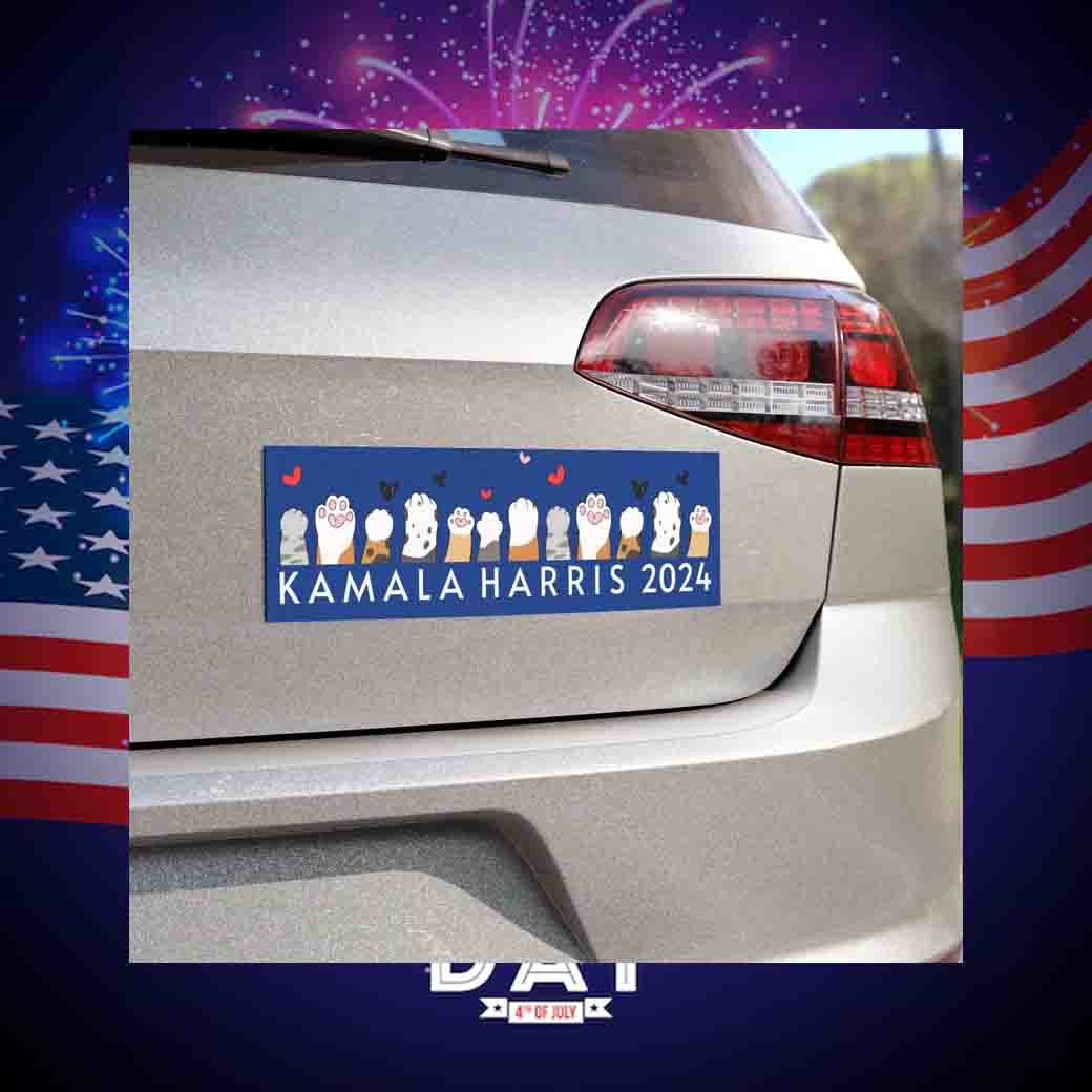 Declare your unwavering support for Kamala Harris and your feline companions with this bold and witty car magnet.