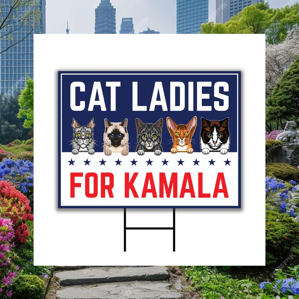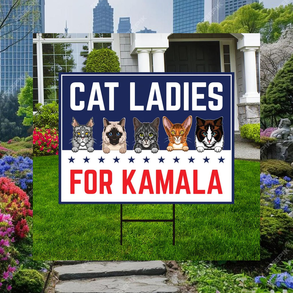 Show your support for Kamala Harris and your feline companions with this eye-catching yard sign!