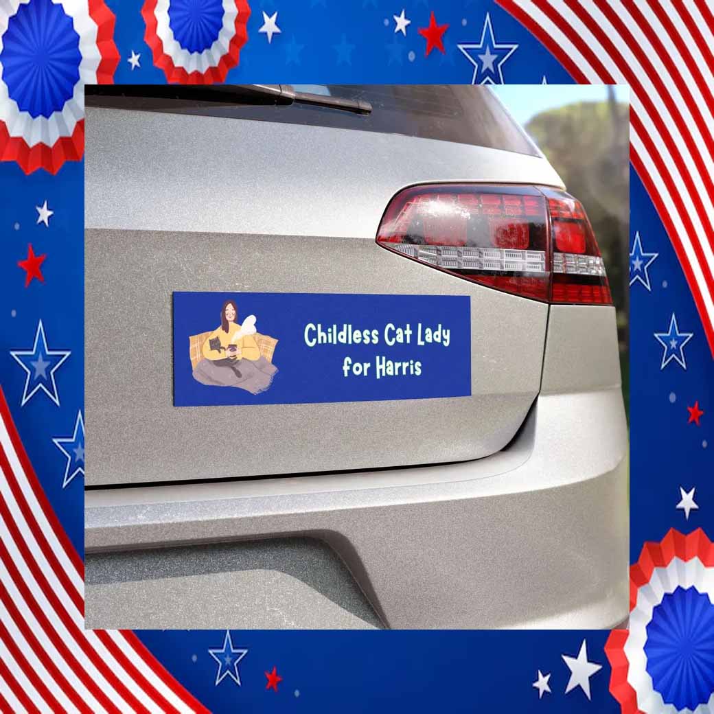 Declare your political stance and feline devotion with our exclusive Childless Cat Lady for Harris 2024 Car Magnet!