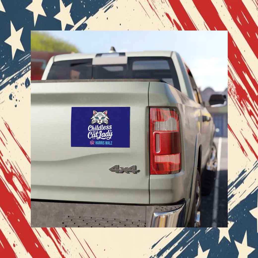 Introducing the Childless Cat Lady For Harris Walz Bumper Car Magnet, the purr-fect accessory for any cat-loving car enthusiast!