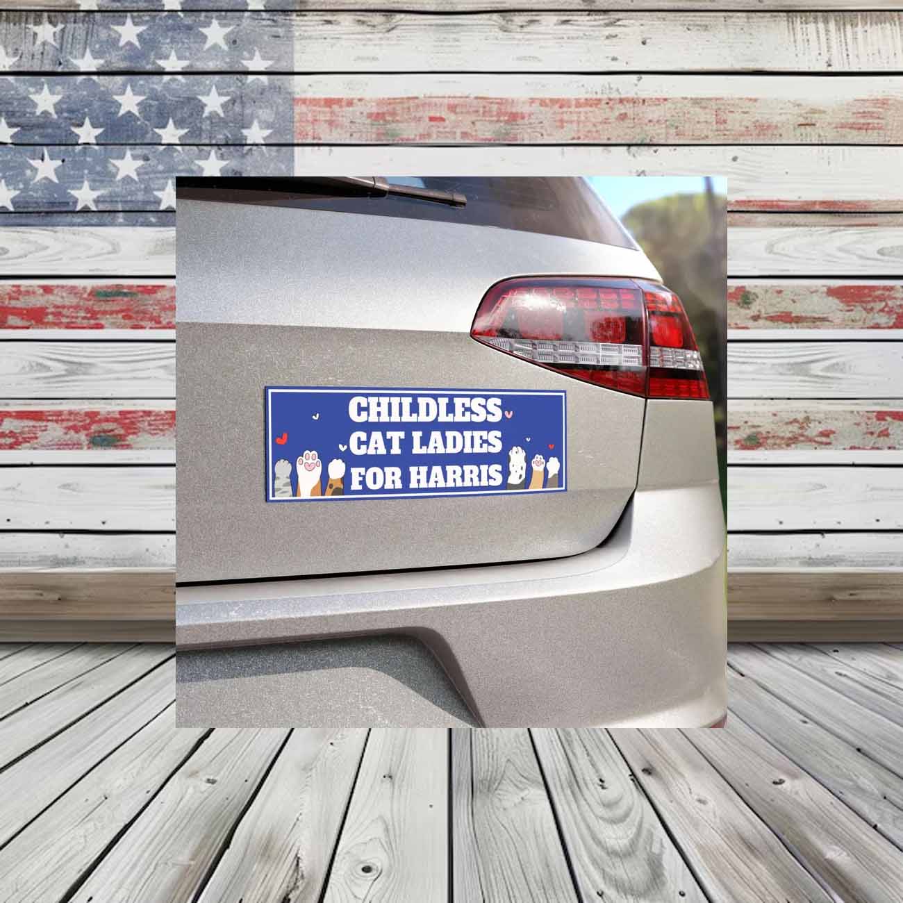 As a childless cat lady, you’re proud of your independence and your love for your feline friends. This car magnet is the perfect way to express your political views and your passion for cats. It’s a subtle yet powerful statement that shows you’re not afraid to stand up for what you believe in.