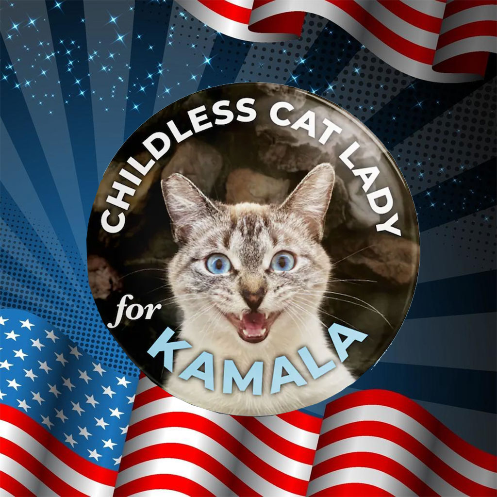 Join the growing community of empowered cat ladies and show the world that you are proud to be childless, feline-loving, and fiercely feminist. Order your Childless Cat Lady for Kamala Stickers today and let your voice be heard!