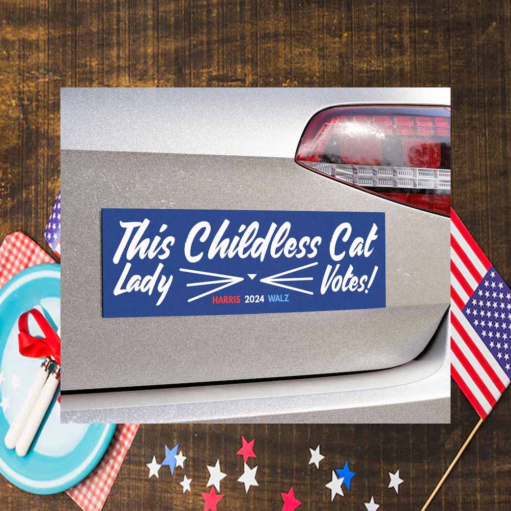 Childless Cat Lady Harris Walz 2024 Car Magnet