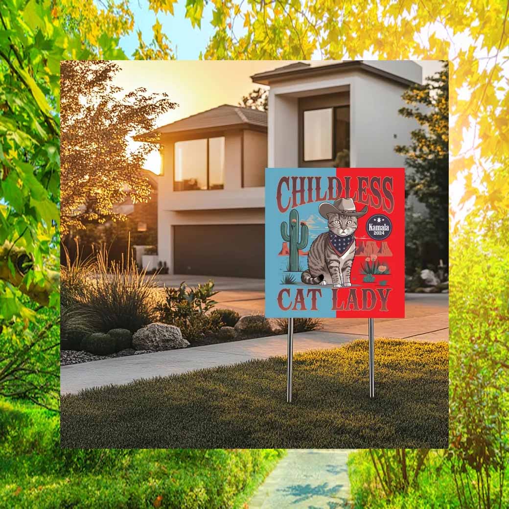 Order your Childless Cat Lady Harris Walz 2024 Yard Sign today and let the world know that you’re a proud cat lady with a voice in politics!