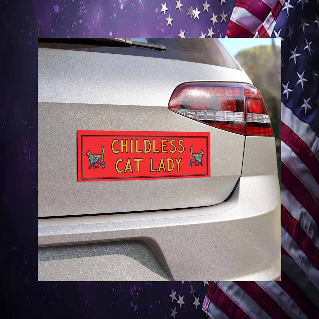Join the ranks of proud “Childless Cat Lady Vote Kamala” supporters and let your car magnet speak volumes about your passions and priorities. It’s a statement piece that will turn heads, spark conversations, and make a lasting impression.