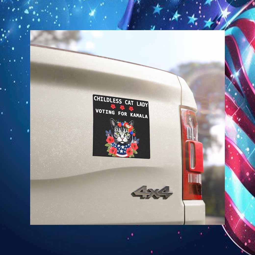 Declare your support for Kamala Harris and your feline-loving status with this eye-catching car magnet!