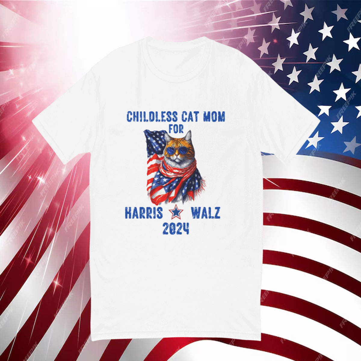 Childless Cat Mom for Harris Walz 2024 T-Shirt