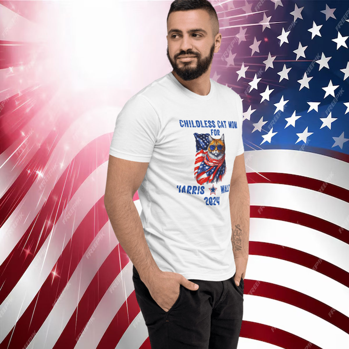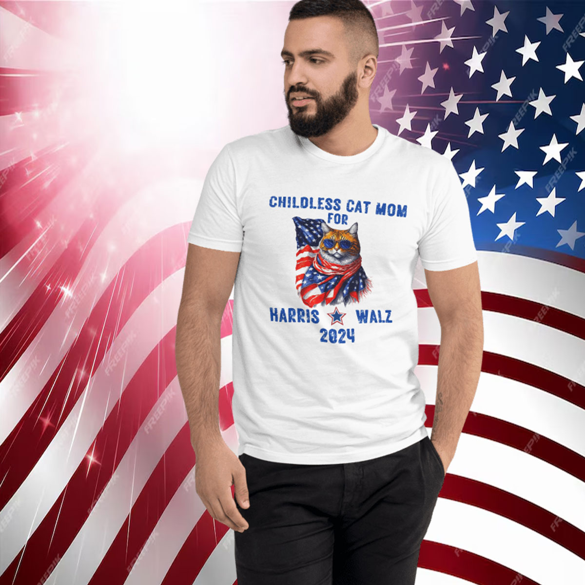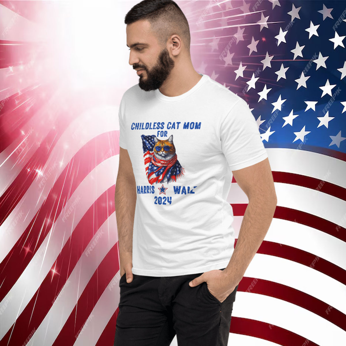 Eye-Catching Design: The bold “Childless Cat Mom for Harris Walz 2024” print makes a statement and sparks conversations.