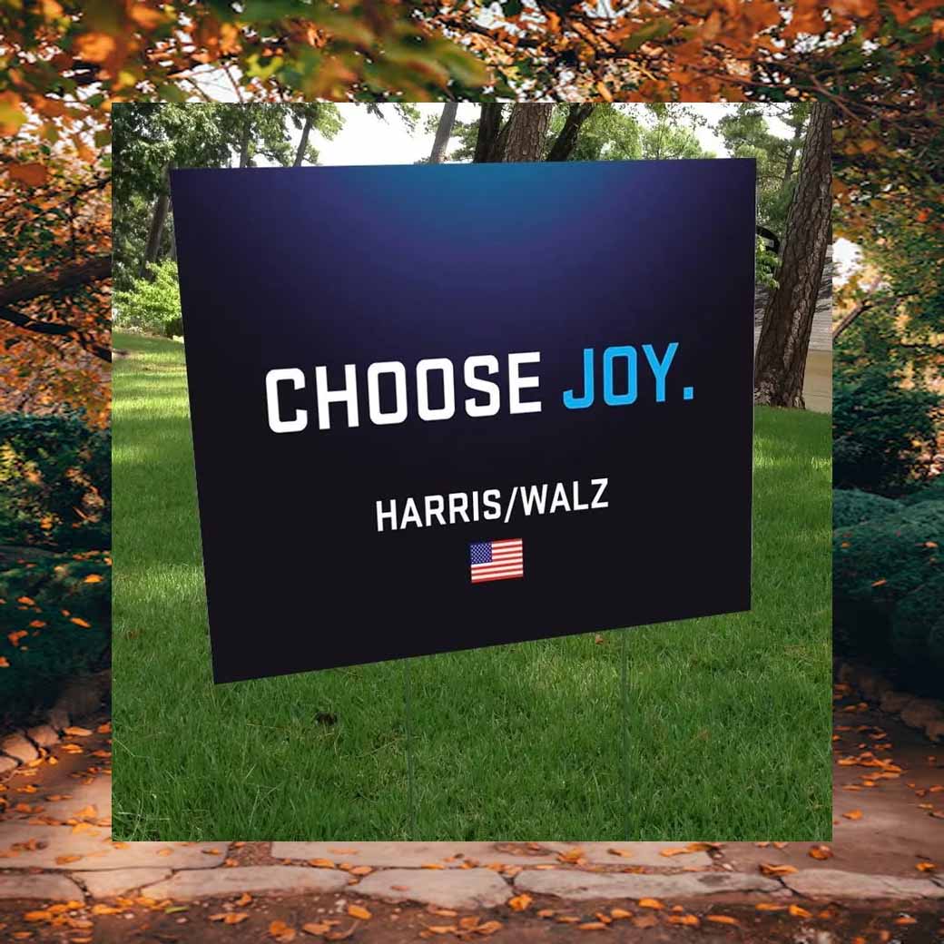 Illuminate your yard with the vibrant message of “Choose Joy” with our Harris Walz Yard Sign. This eye-catching sign is crafted from durable corrugated plastic, ensuring it withstands the elements and spreads positivity all year round.