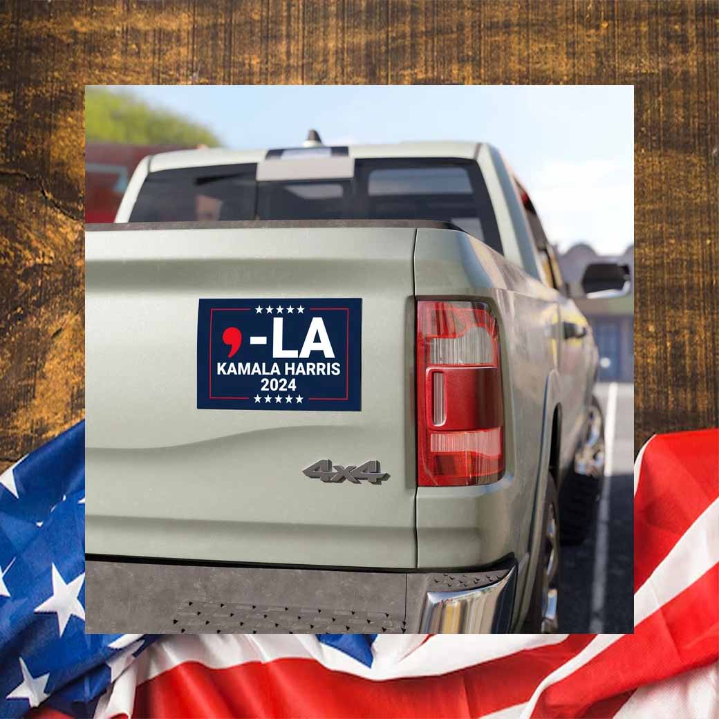 Show your support for the legendary Comma La Harris Walz with this eye-catching car magnet!