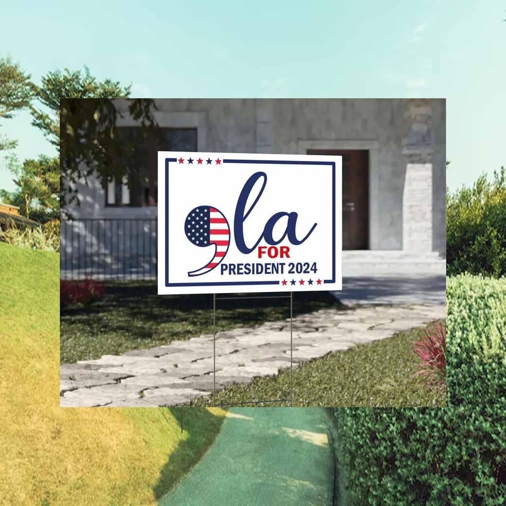 Join the movement and show your support for Kamala Harris with this Comma La Kamala Harris Yard Sign. Order yours today and make a bold statement about your values and beliefs.