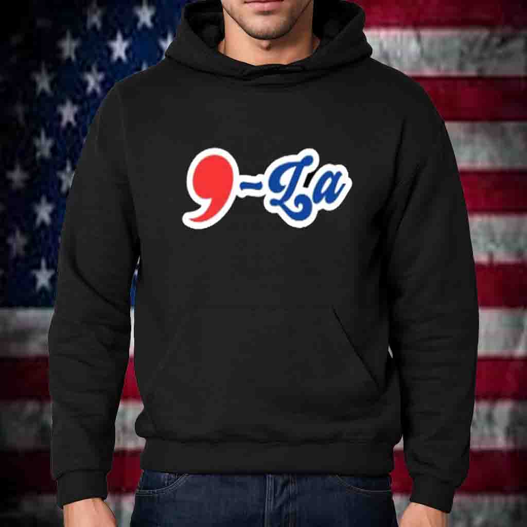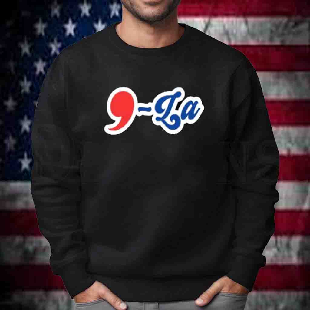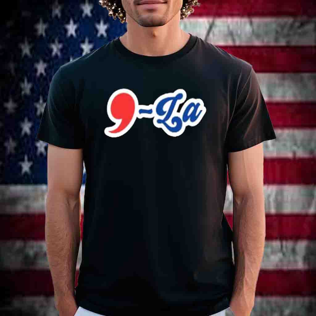 The shirt features a vibrant print of the iconic “Comma La” logo, a symbol of unity and determination. The bold lettering and vibrant colors command attention, making you an ambassador for change wherever you go.