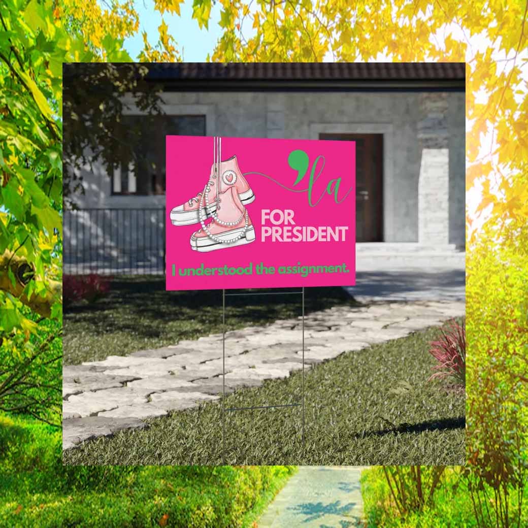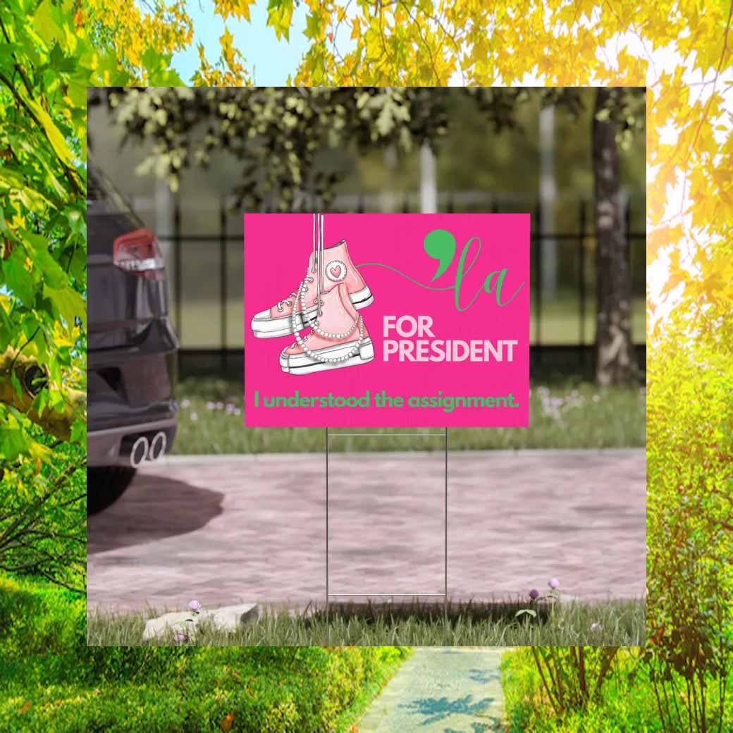 Show your support for the Comma La Vote Harris Walz presidential campaign with this vibrant and durable yard sign.