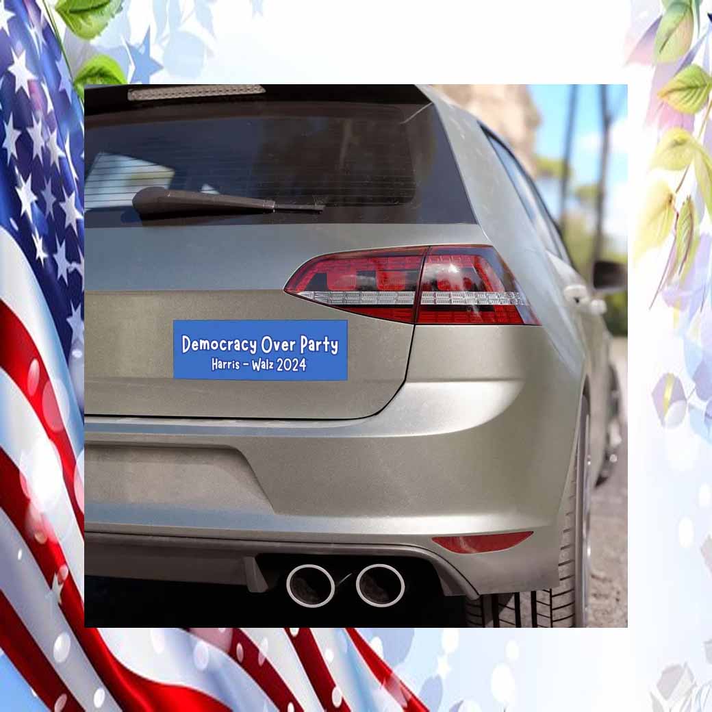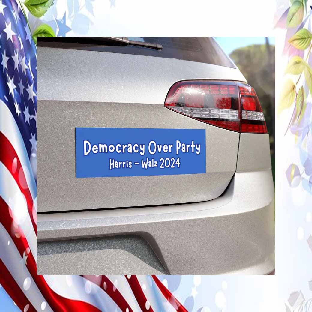 Democracy Over Party Harris Walz 2024 Car Magnet