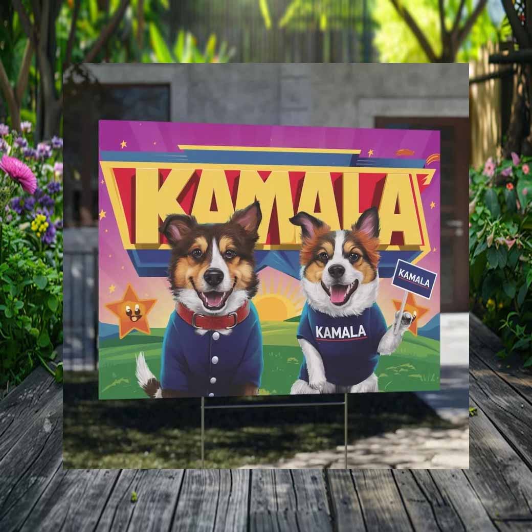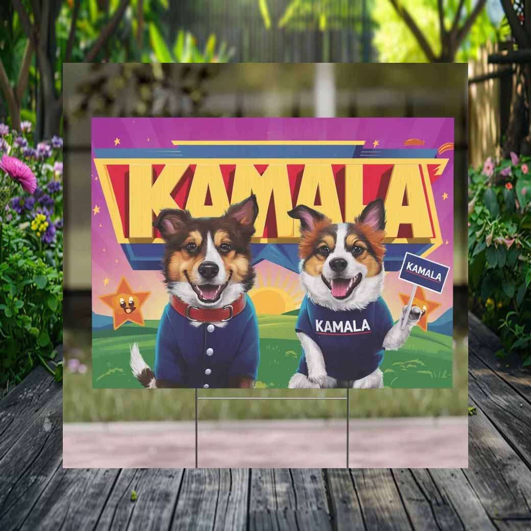 Show your support for Kamala Harris and her love for dogs with this eye-catching lawn yard sign!