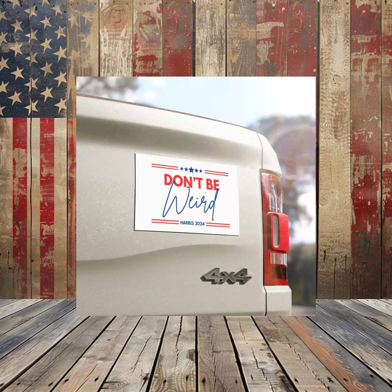 Join the movement and show your support for Kamala Harris with this Don’t Be Weird car magnet. Order yours today and let your voice be heard!