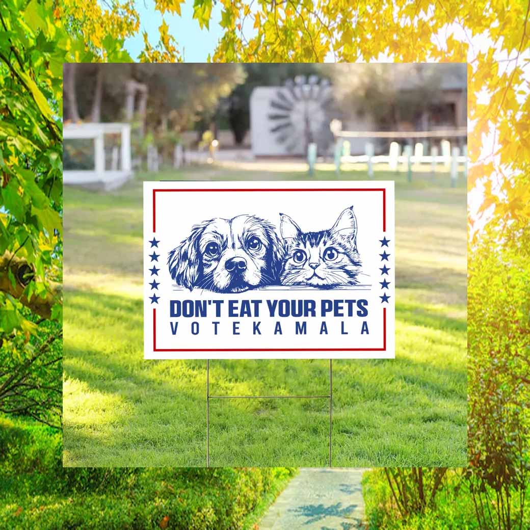 Join the movement and show your support for Harris, Vote Kamala, and Walz with this Don’t Eat Your Pets yard sign. It’s the perfect way to make your voice heard and inspire others to do the same.