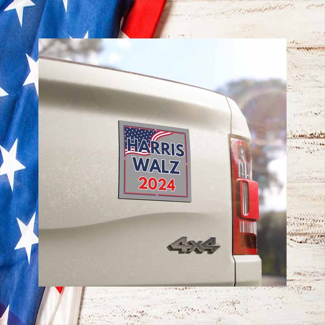 Show your support for Harris Walz in the 2024 election with this bold and eye-catching car magnet.