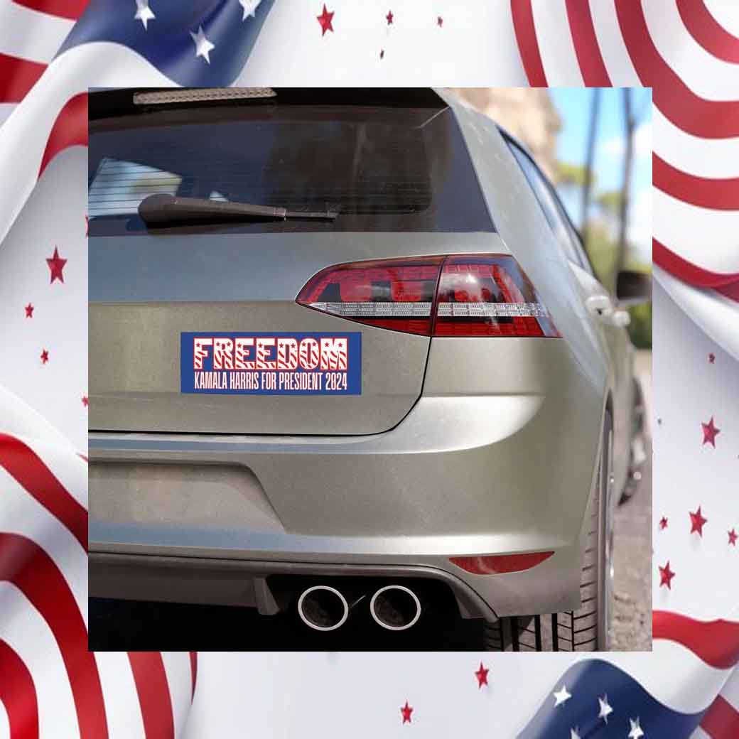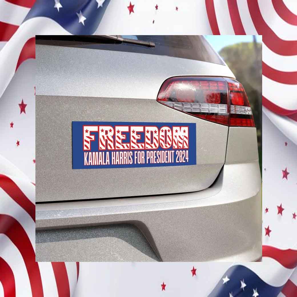 Join the movement and show your support for Freedom Kamala Harris for President 24 with this eye-catching and impactful car magnet. Let your vehicle be a beacon of change and inspiration, and help make history in the 2024 election.