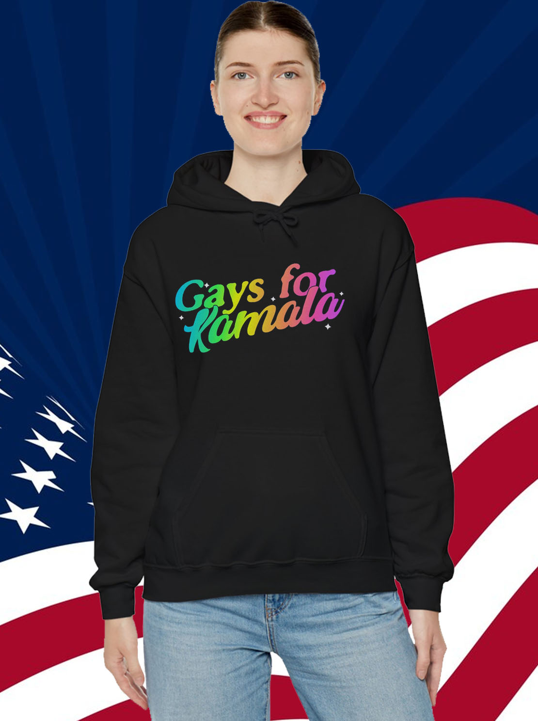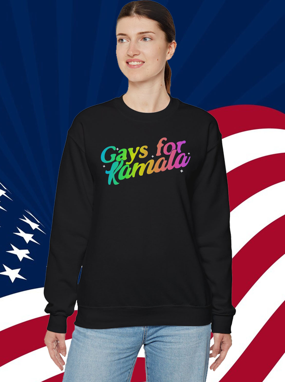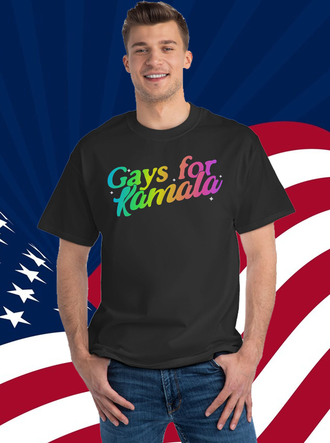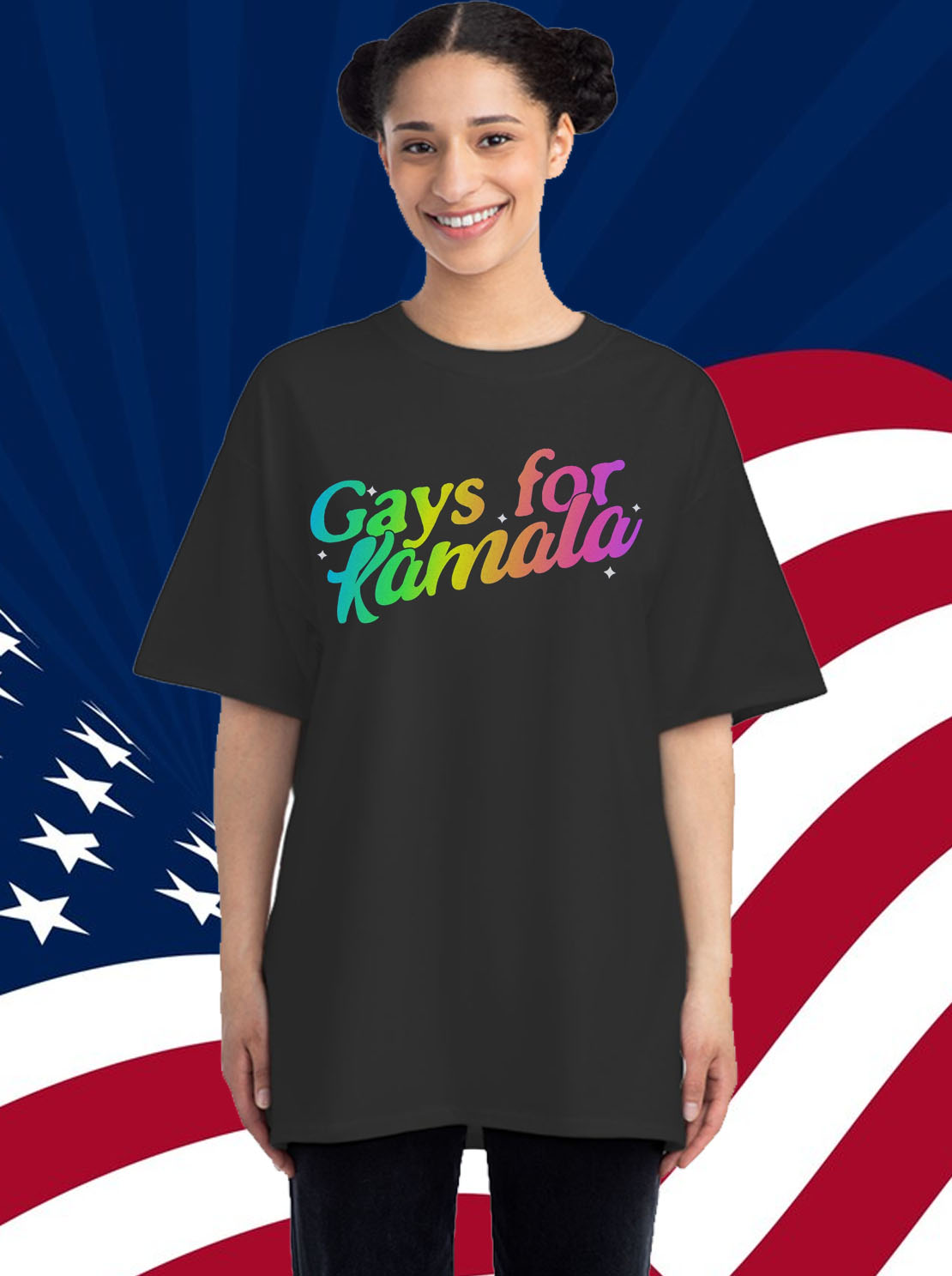 Eye-catching design featuring the iconic “Gays for Kamala Harris” slogan