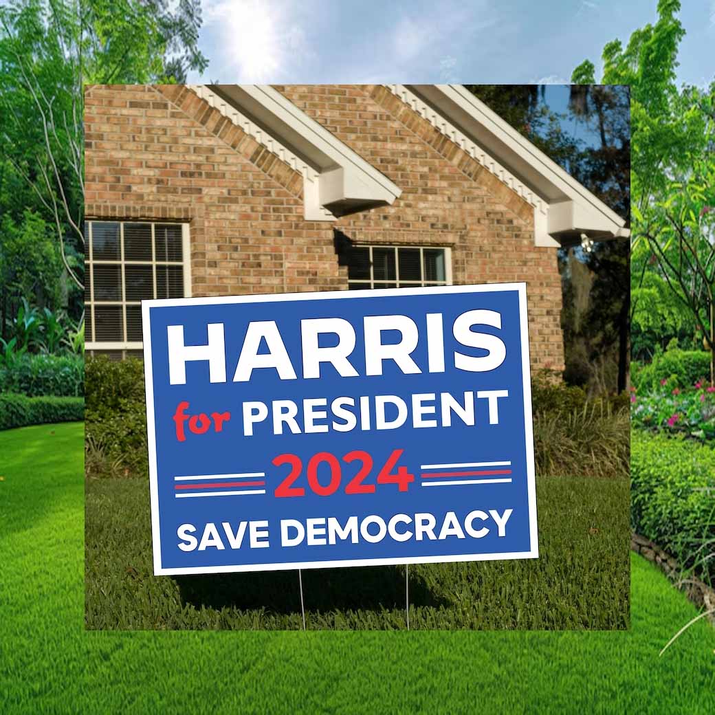 Join the movement to save democracy and elect Kamala Harris as President in 2024. Order your Harris For President lawn yard sign today and make your voice heard!