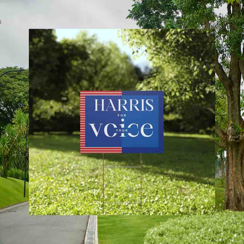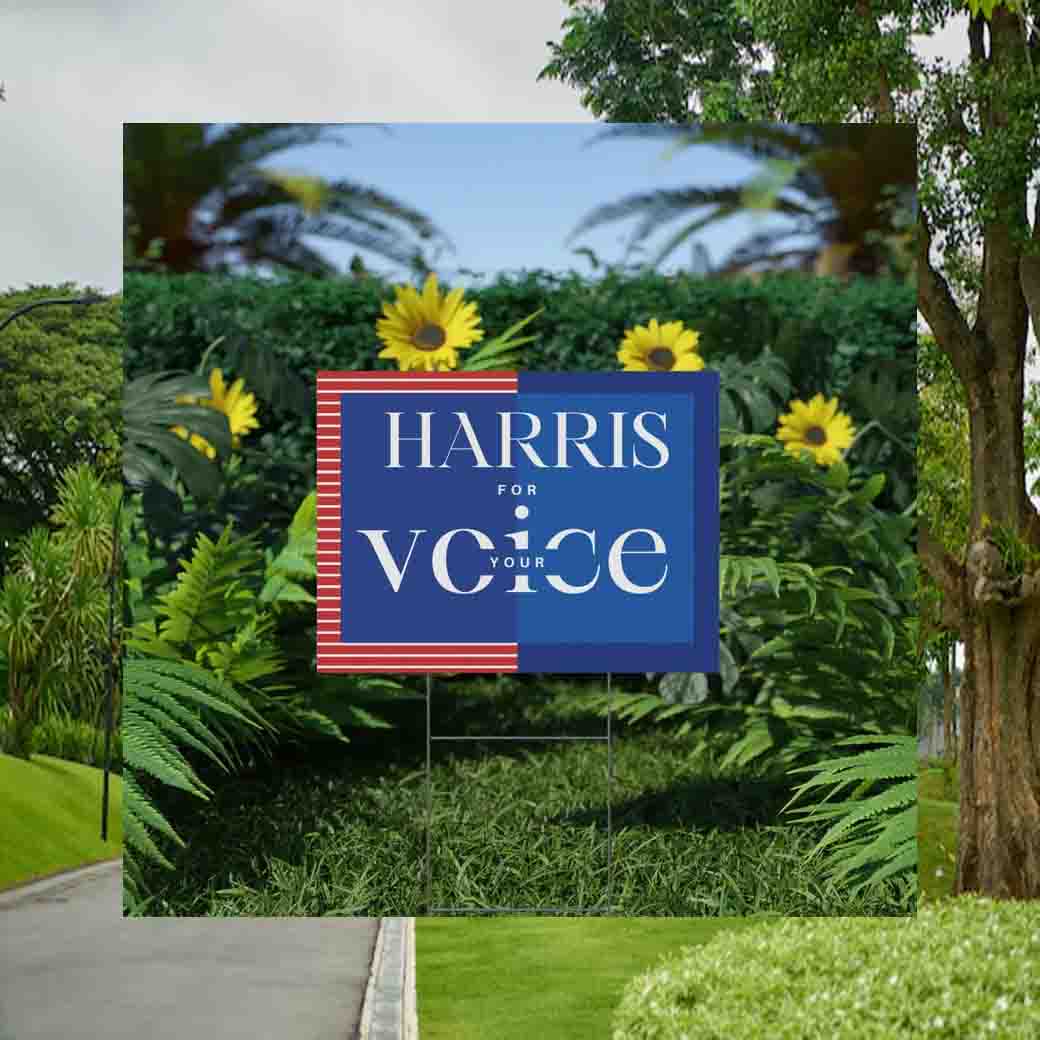 Our Harris For Your Voice Yard Sign is an investment in your beliefs and a powerful tool for spreading your message. It’s a tangible representation of your support and a symbol of the change you want to see in the world.