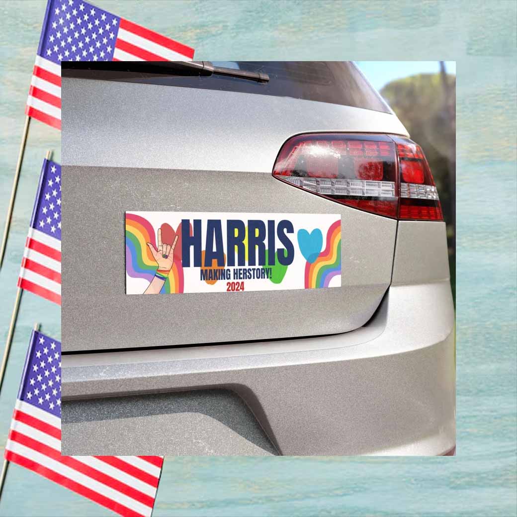 Show your support for the historic campaign of Kamala Harris with our exclusive “Harris Making Herstory 2024” car magnet.