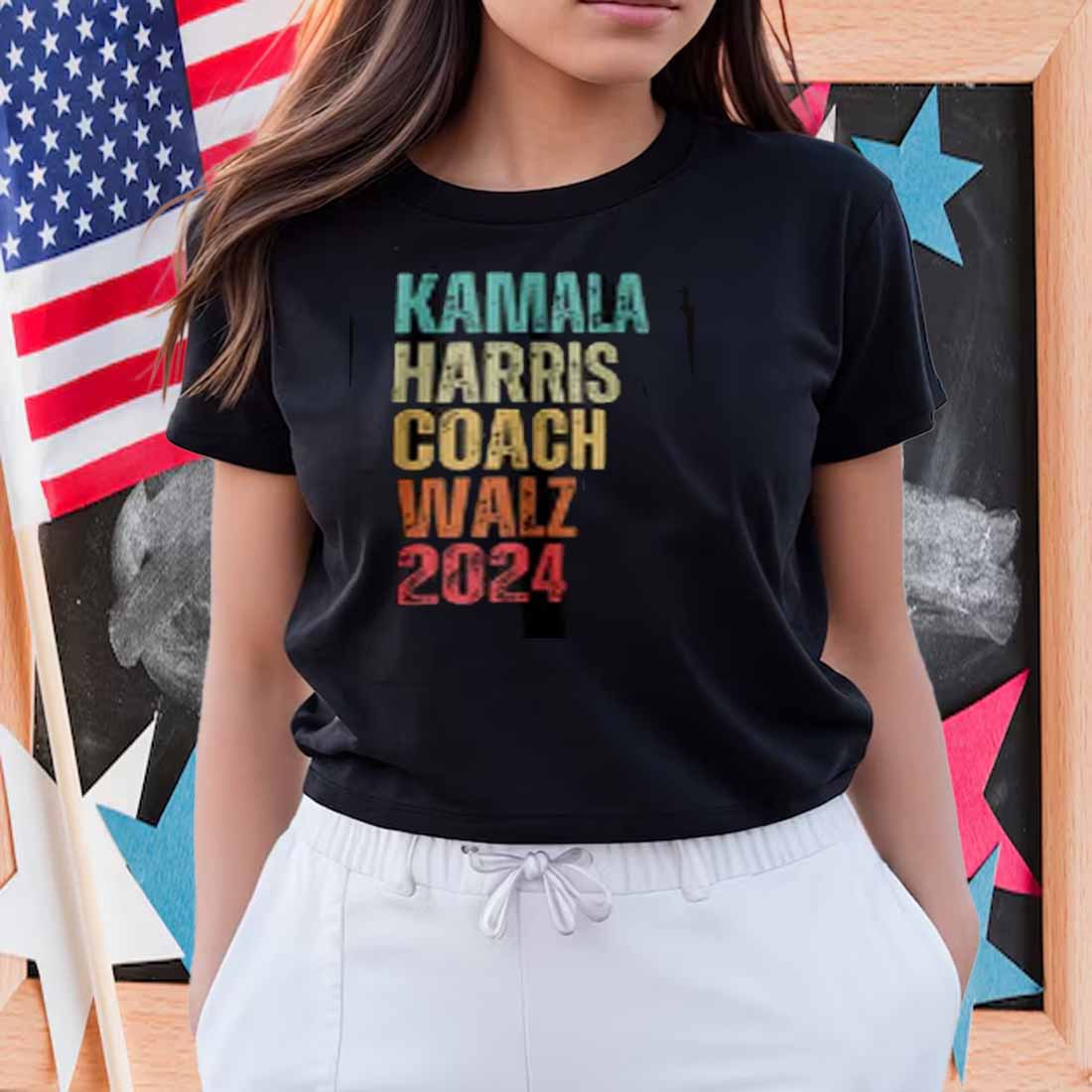 Harris Waltz 2024 Retro Style Tee – Kamala Harris & Coach Walz Campaign Shirt