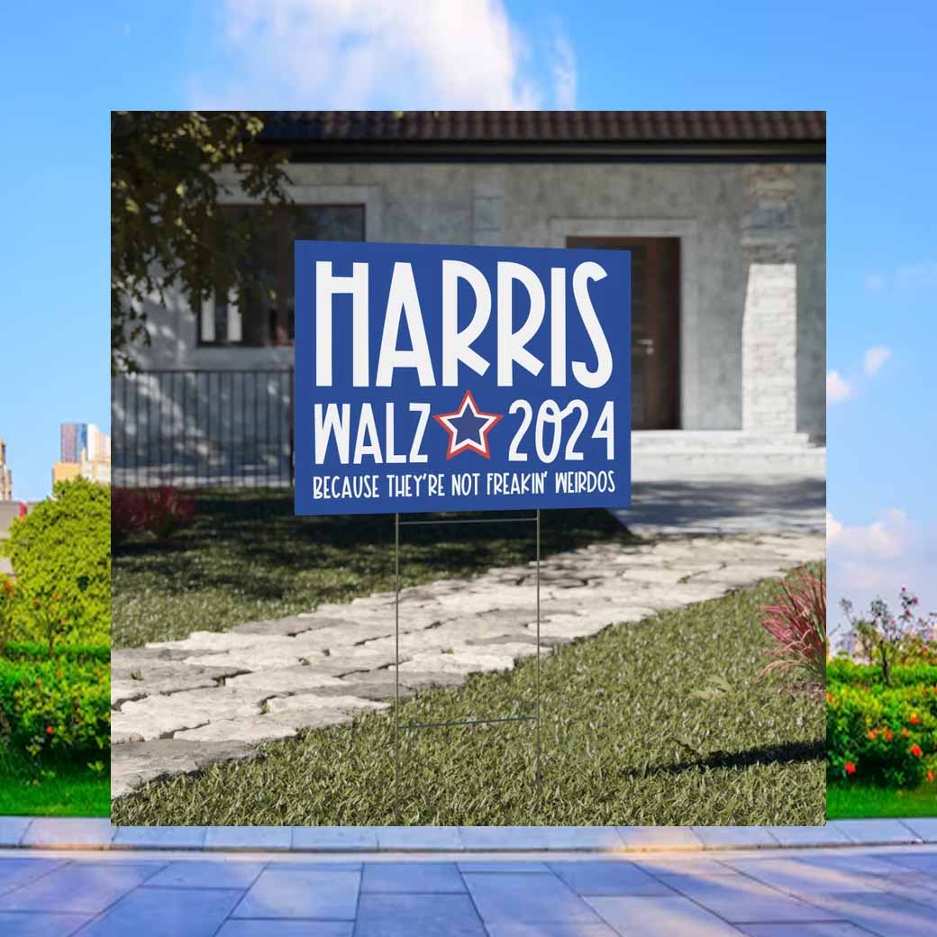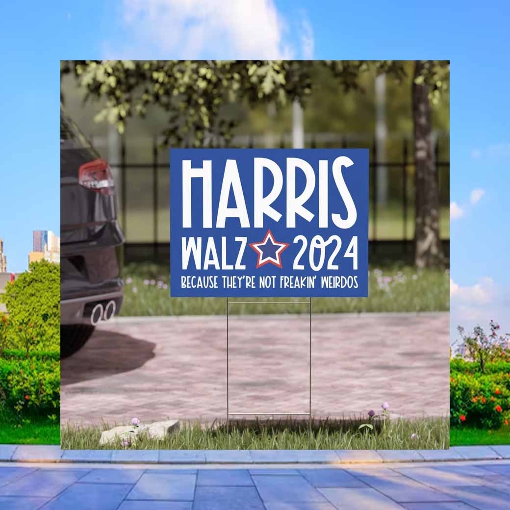 Harris Walz 2024 Because They’re Not Feakin’ Weirdos Lawn Yard Sign