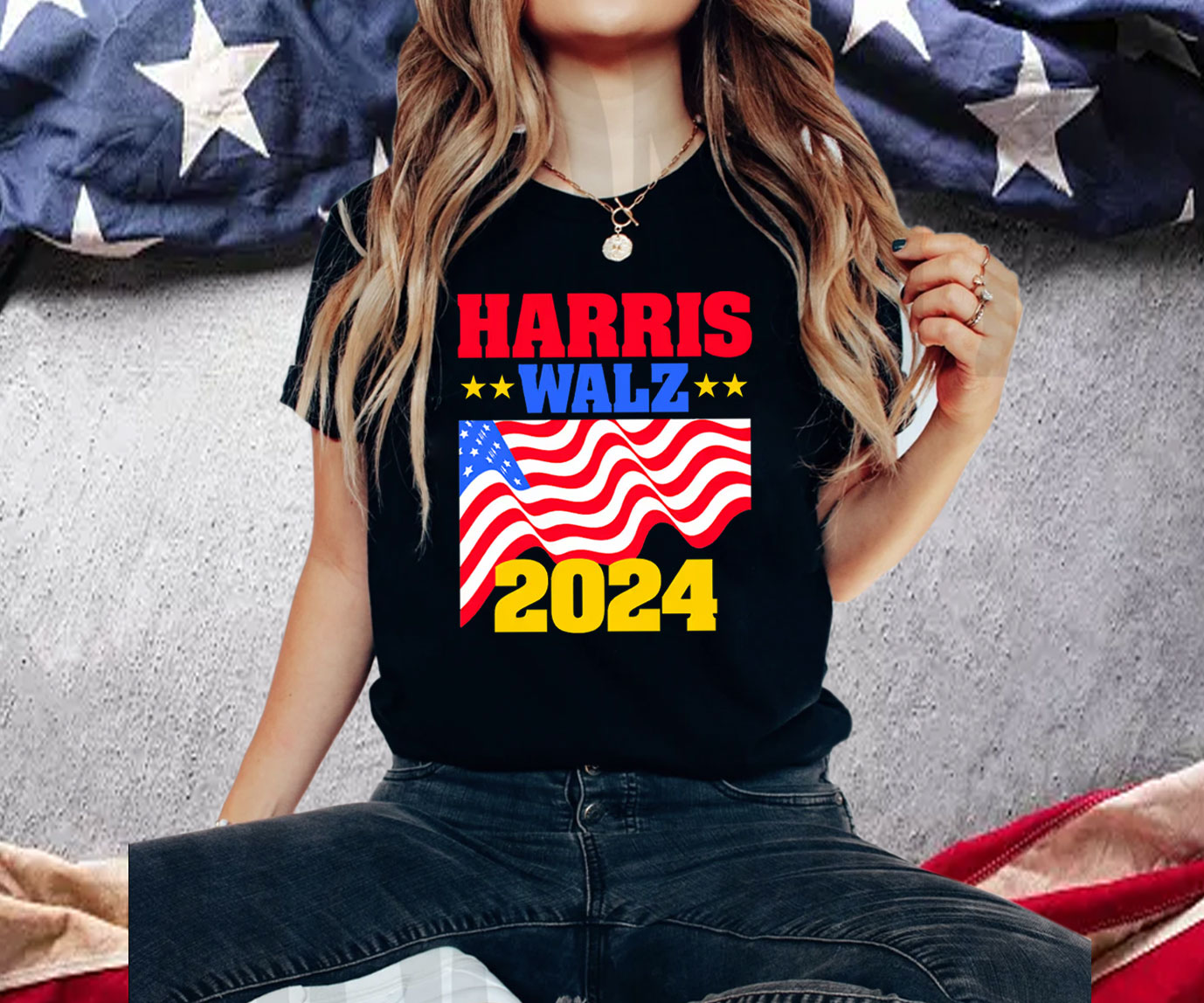 Embrace the political fervor of 2024 with our exclusive Harris-Walz T-shirt, designed to make a bold statement on dark backgrounds. Crafted from premium cotton, this T-shirt offers exceptional comfort and durability, ensuring you stay comfortable while spreading your message.